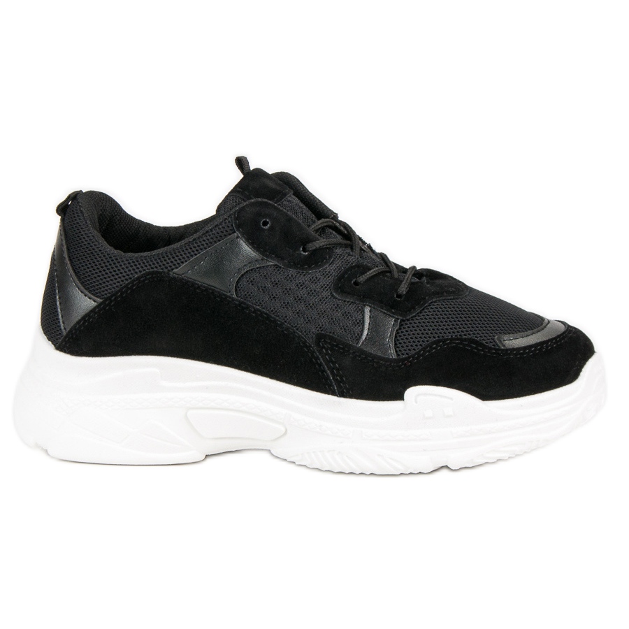 Découvrez nos chaussures de sport décontractées en noir, parfaites pour les femmes qui apprécient le confort et le style au quotidien. Ces chaussures à la mode sont conçues pour une variété d'activités : de l'école au travail en passant par les séances d'entraînement en soirée. Fabriqués en daim écologique, ils garantissent non seulement un superbe look, mais aussi un confort de port.