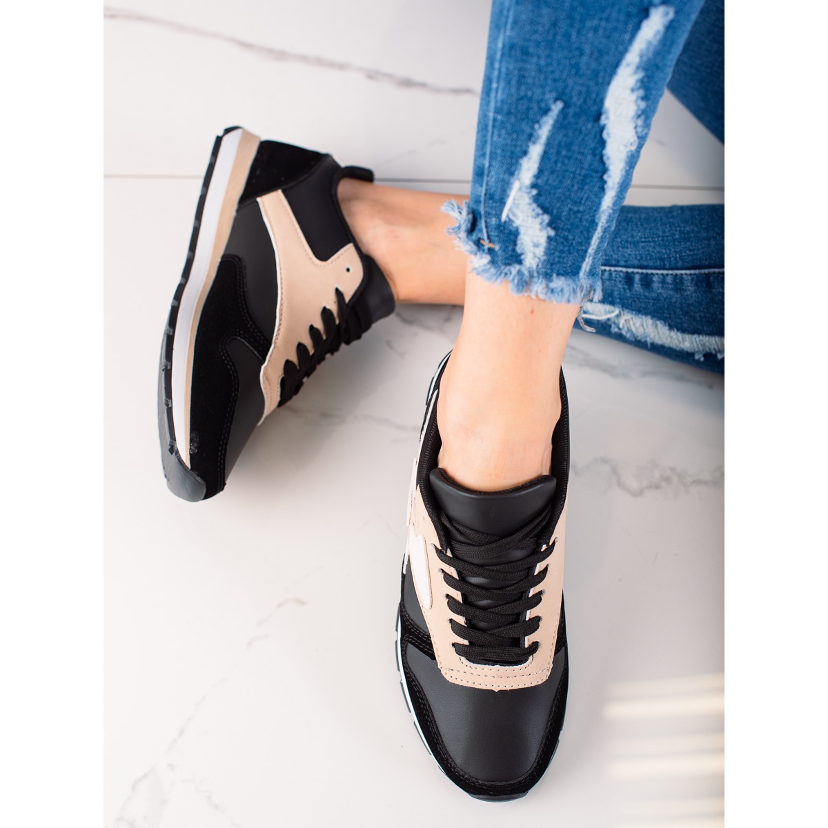 Détails: TRENDI Chaussures de sport décontractées beige noir
