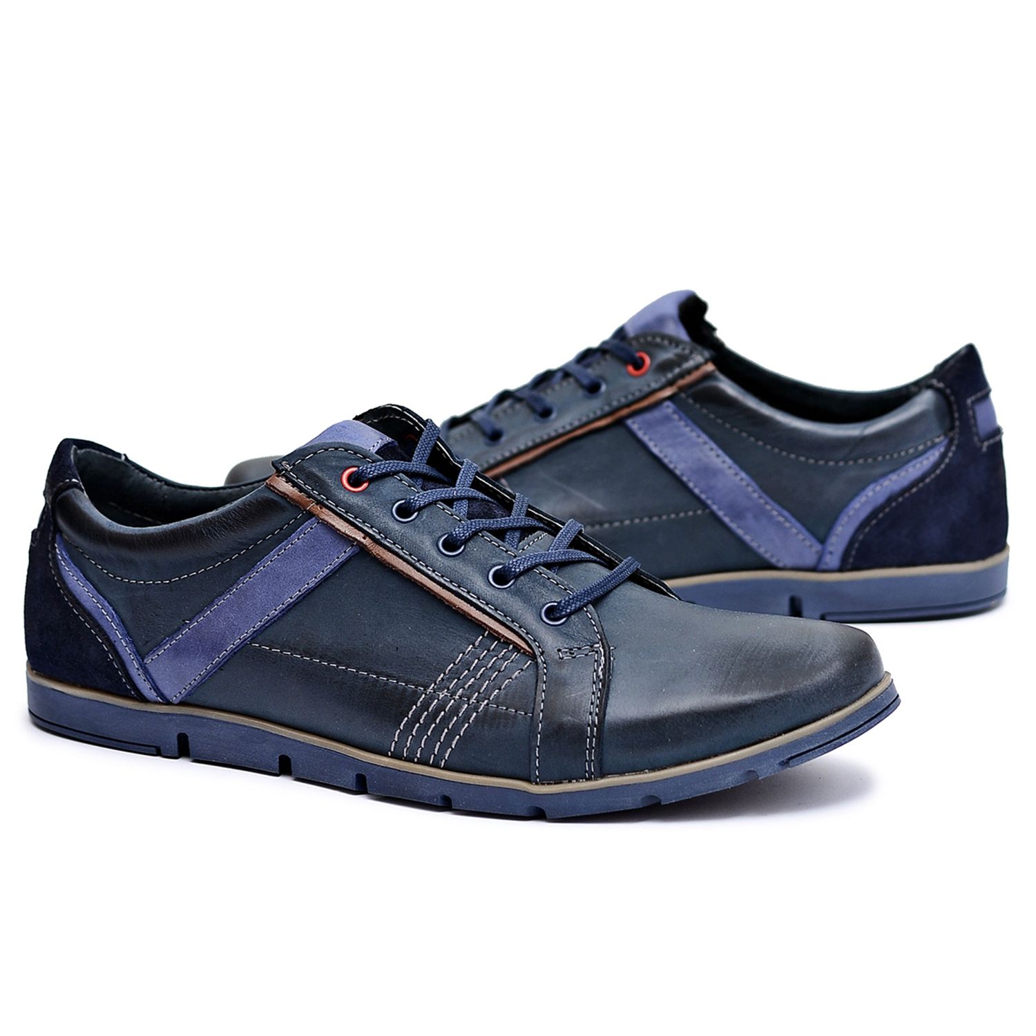 Détails: KOMODO Chaussures de sport en cuir bleu marine pour hommes Syko