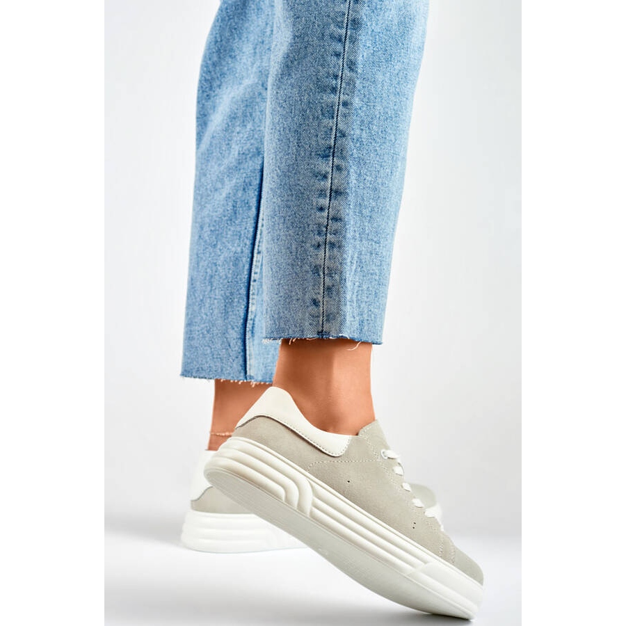 Inna marka Chaussures de sport en cuir pour femmes, grises GD-XF-113G