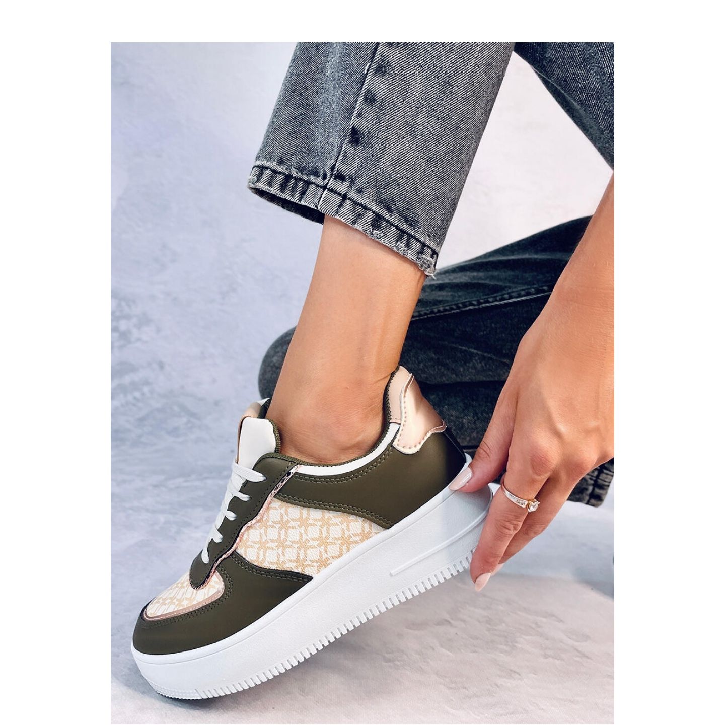 Les chaussures de sport féminine Glovi Green de la marque Inello sont un excellent choix pour les femmes qui veulent combiner le style et le confort. Ces chaussures extrêmement à la mode se distinguent non seulement par une coupe classique, mais aussi avec un design unique, qui attirera certainement les looks. Grâce à la semelle surélevée avec une hauteur de 4,5 cm, votre silhouette gagnera une lueur unique et vous vous sentirez à l'aise et confortable.