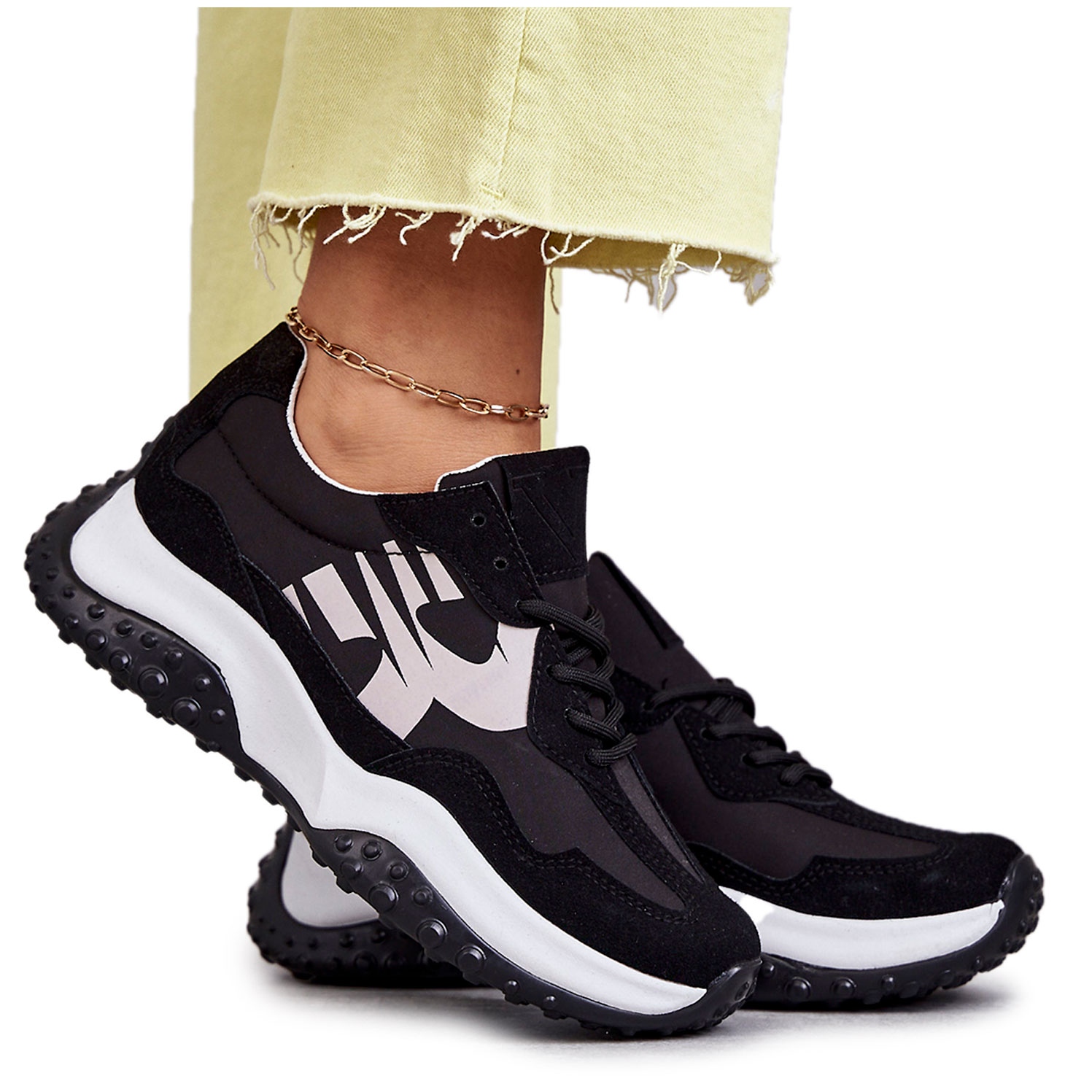 Vinceza Chaussures de sport femme nouées noires Tolea