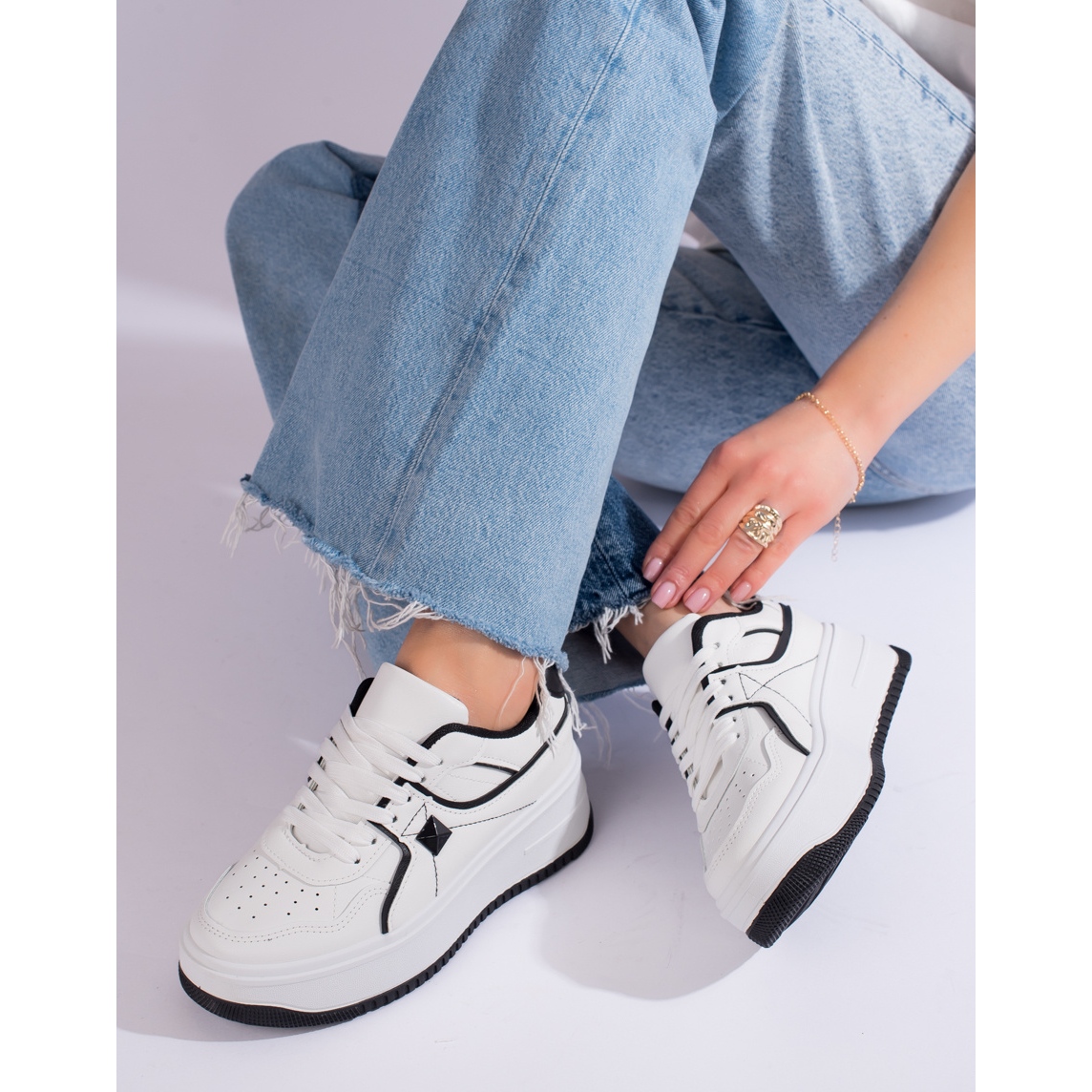 Ce modèle a été conçu pour les femmes qui apprécient la simplicité des fermetures : le laçage classique garantit non seulement un ajustement parfait au pied, mais ajoute également un caractère sportif aux chaussures. Conservées dans une élégante tonalité de couleur blanche avec des éléments noirs, les baskets Shelovet sont non seulement confortables, mais se distinguent également des autres chaussures de sport par leur caractère unique et leur adaptabilité à différents styles.