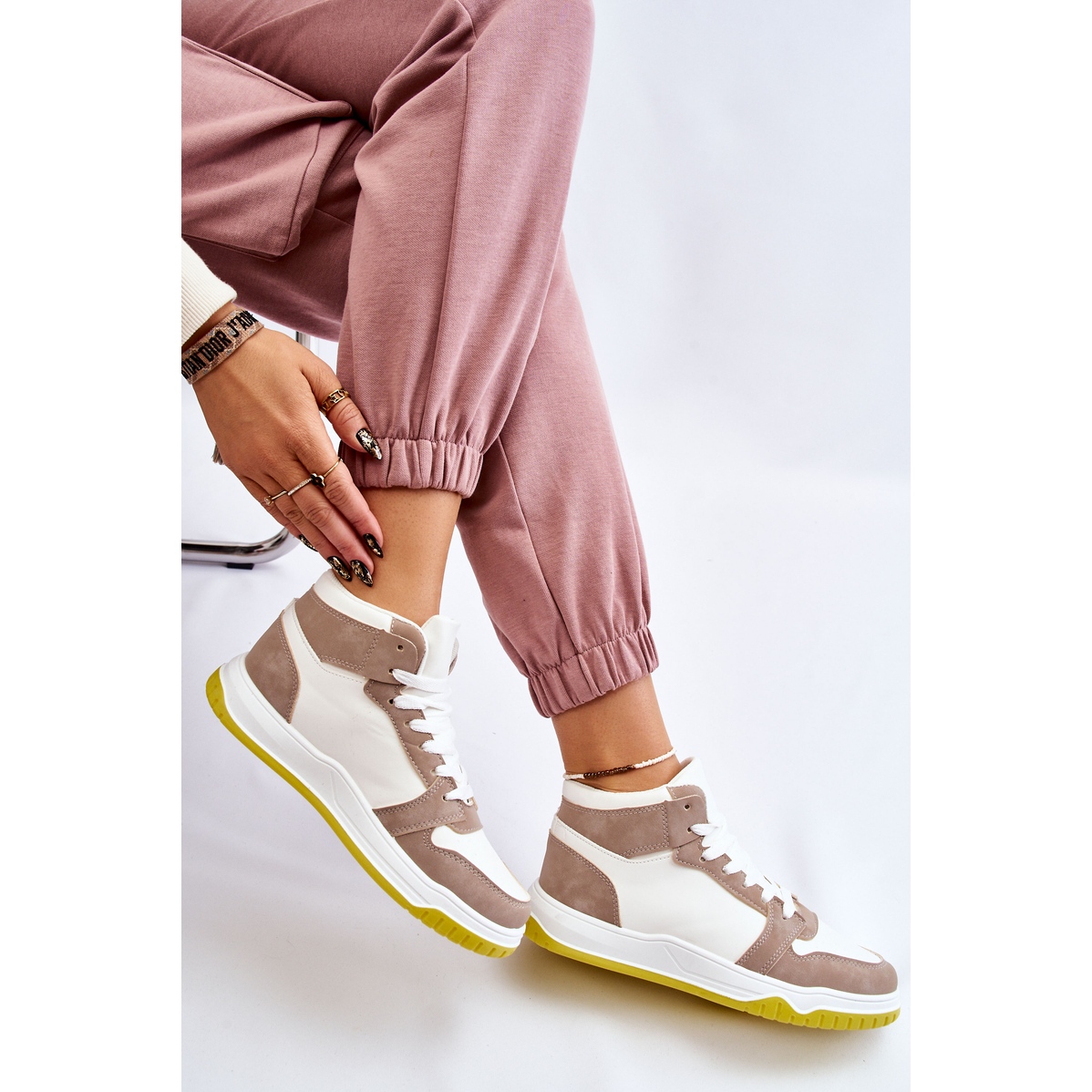 Détails: BM Chaussures de sport hautes pour femmes Baskets blanches et beiges Rumeur