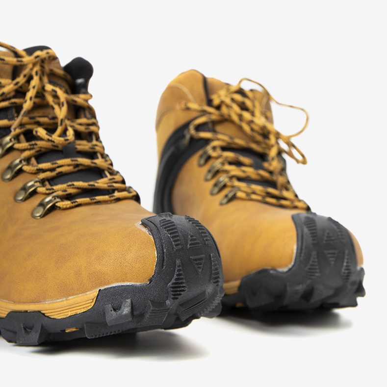 Nous vous présentons les chaussures de sport isolées pour hommes Barry Camel dans une version de couleur jaune - un choix parfait pour un voyage hors de la ville. Ces chaussures élégantes et fonctionnelles sont réalisées en éco-cuir marron clair avec des inserts noirs contrastés, ce qui leur confère un caractère unique. Le modèle Barry s'inspire des chaussures de trekking, qui allient efficacement confort et design moderne.