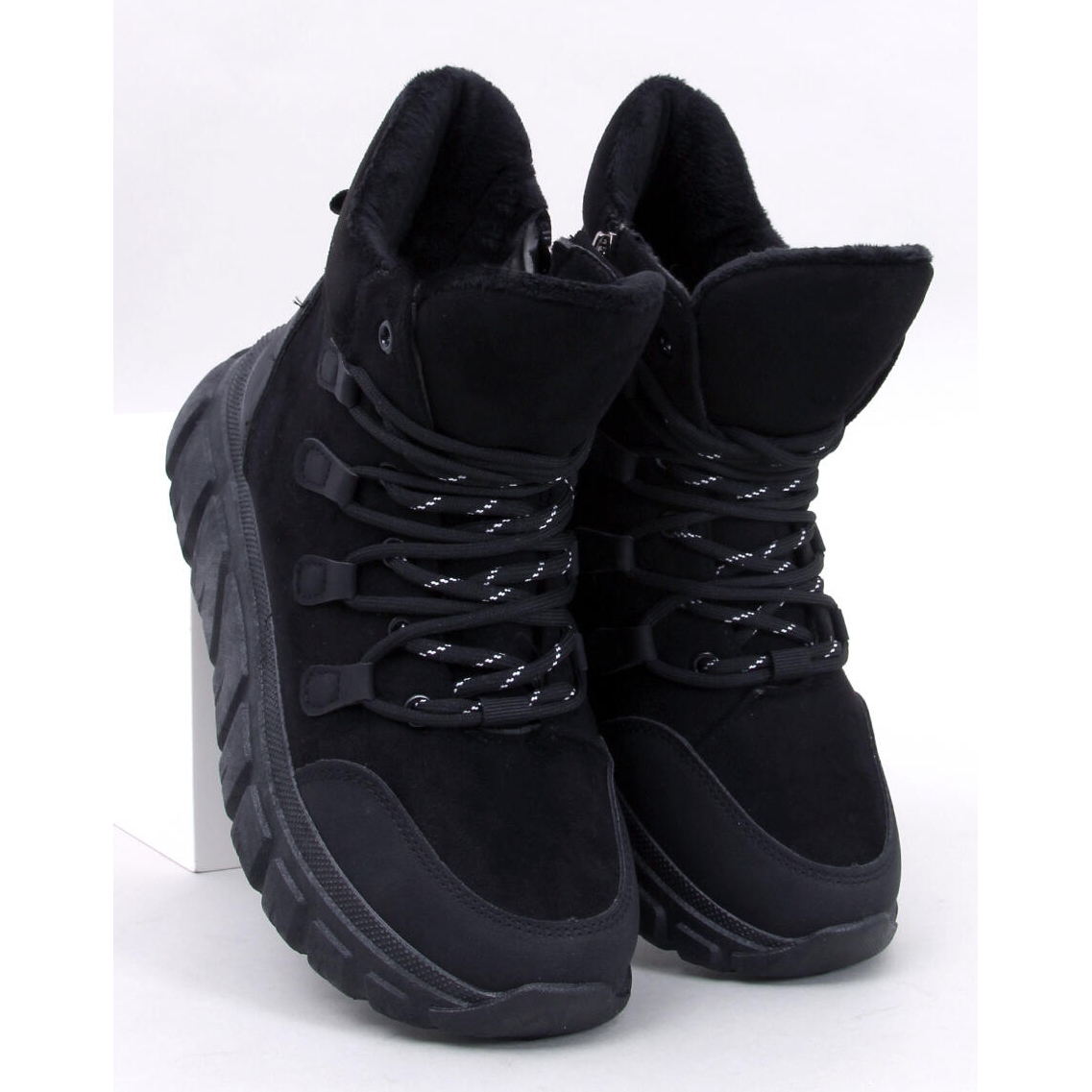 L'intérieur des chaussures est doublé d'une fourrure délicate, qui assure chaleur et confort de port, même par temps froid. Fabriquées à partir de matériaux de haute qualité, comme le cuir écologique et le daim écologique, les chaussures Cammy Black sont non seulement respectueuses de l'environnement, mais également faciles à entretenir. Un bout rond et une plateforme de 4 cm de hauteur soulignent leur caractère sportif et ajoutent en même temps du style à n'importe quel style.