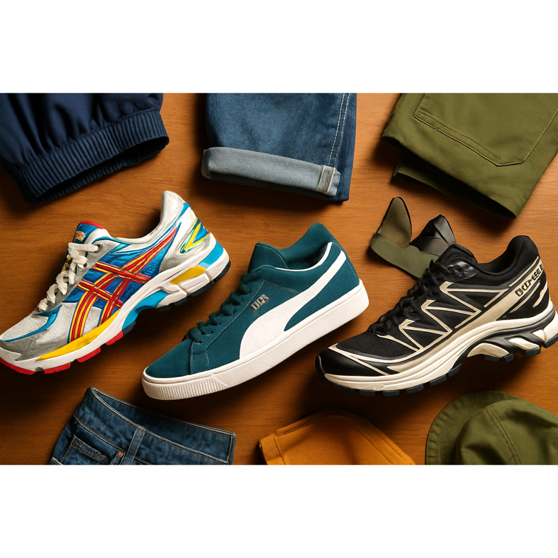 Nike Dunk aux couleurs vives, Asics Gel aux couleurs Y2K. Pour les plus courageux, comme point central du style.