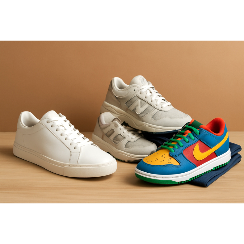 Construisez votre garde-robe à partir de baskets blanches minimalistes, ajoutez un modèle chunky de couleur sobre et, en option, une pièce tendance colorée. Cela vous donnera une polyvalence pour toute occasion.