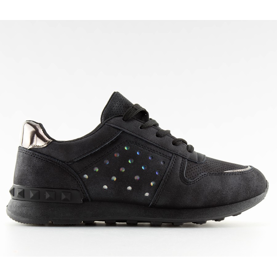 Nous vous présentons d'extraordinaires chaussures de sport pour femmes SU12P Noir, gris, qui allient style classique et moderne. Fabriquées en éco-cuir chatoyant de haute qualité, ces chaussures attirent l'attention grâce à des détails originaux tels que des clous autour de la semelle et des anneaux holographiques. Leur design unique les rend parfaits pour le style quotidien et les activités de plein air.