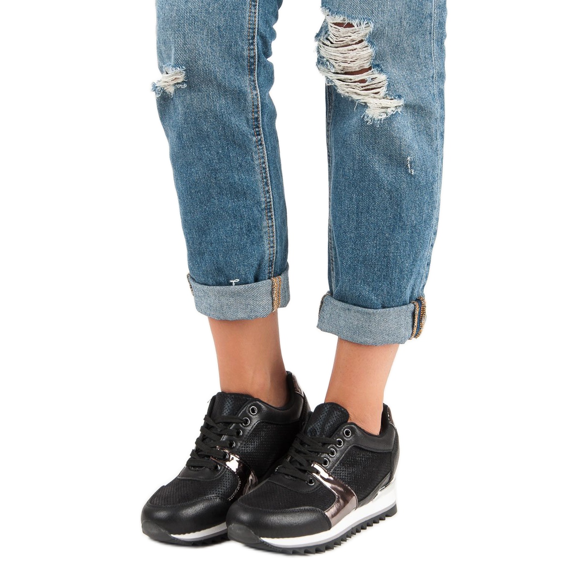 Ces chaussures de sport légères sont parfaites non seulement pour un usage quotidien, mais aussi comme élément élégant de votre garde-robe de sport. Les inserts métalliques leur donnent un look unique, ce qui en fait un accent intéressant dans n'importe quel style. Que vous alliez vous promener, aller au travail ou aller à l'université, ces chaussures noires seront un complément parfait à votre garde-robe. Choisissez le confort et le style avec la collection BUTYMODNE !