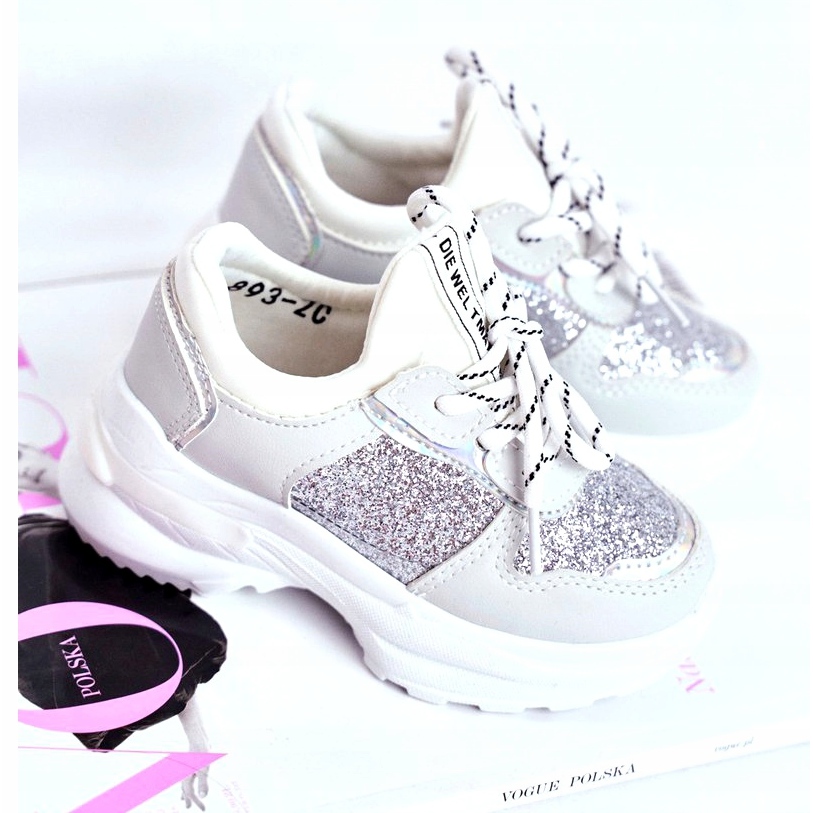 Détails: FRROCK Chaussures de sport pour enfants avec brocart argent Matylda blanc gris