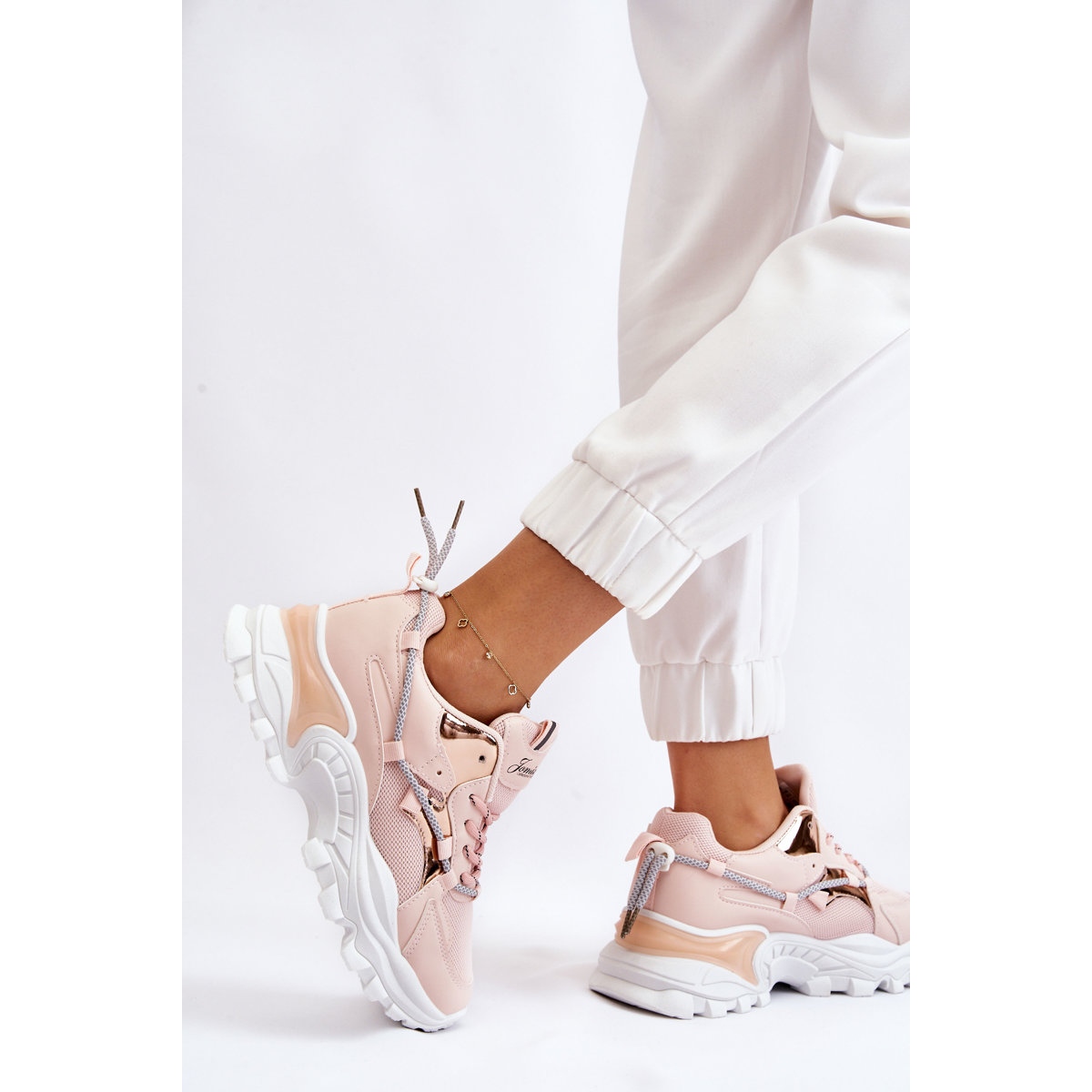 Détails: PA1 Chaussures De Sport Pour Femme Lacées Sur La Plateforme Rose Minea