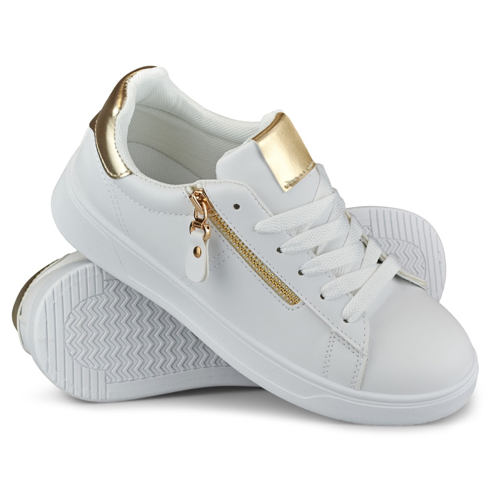 Détails: Chaussures de sport pour femmes avec une fermeture éclair dorée blanc