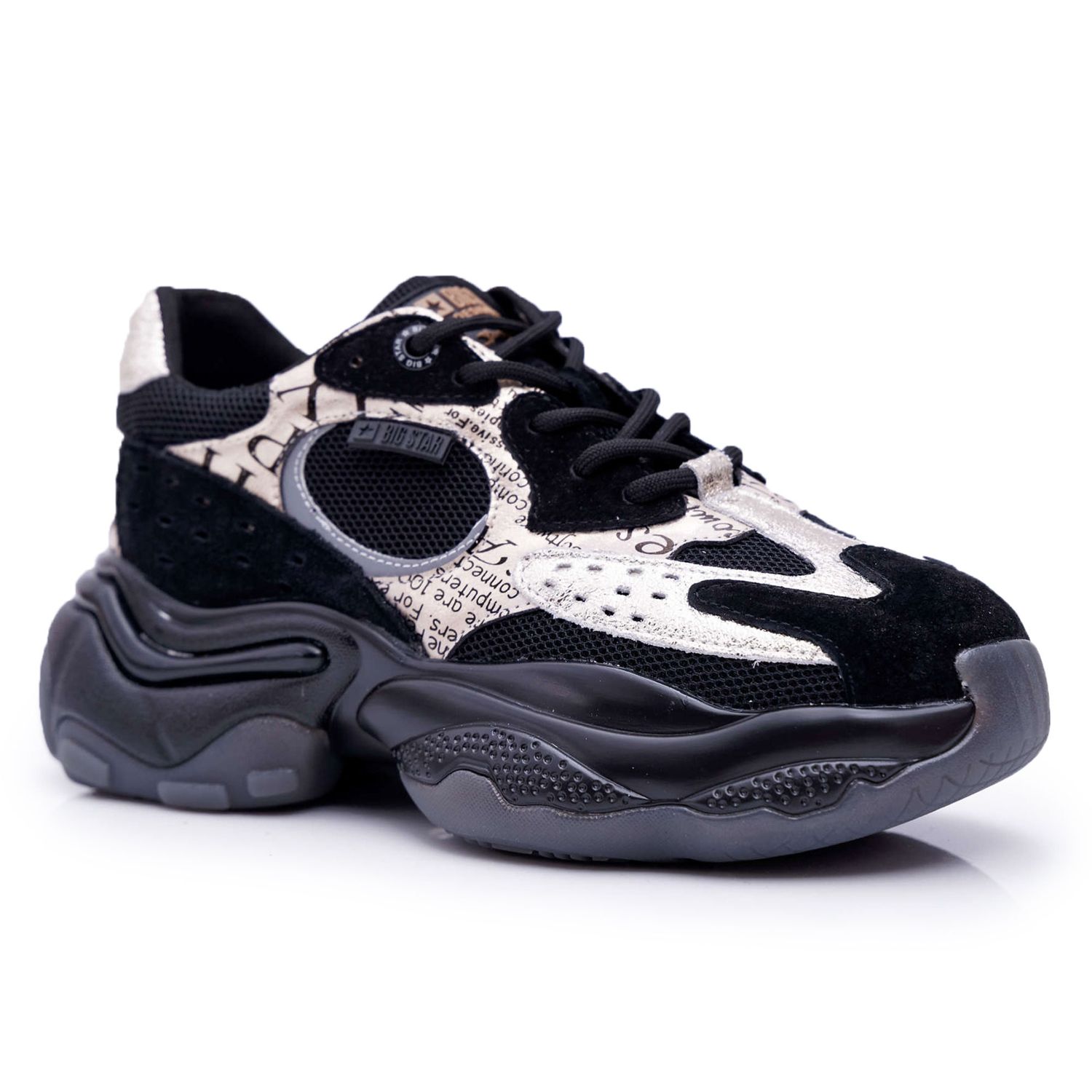 Les chaussures de sport pour femmes Big Star de Daniel Lopez en noir et or sont le choix parfait pour les femmes qui apprécient non seulement le style, mais aussi le confort. Ces chaussures modernes de la dernière collection BIG STAR SHOES sont fabriquées à partir de matériaux de haute qualité, notamment du cuir naturel et du daim, ce qui leur confère un look et une durabilité uniques.
