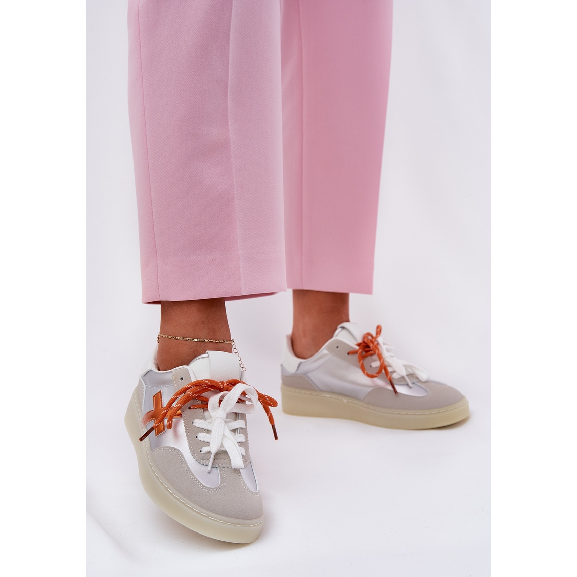 Découvrez notre nouveauté - des chaussures de sport féminines basses dans une couleur argentée élégante. Fabriquées en cuir écologique de haute qualité, ces chaussures de sport combinent le design à la mode et le confort de port inégalé. Leur coupe basse avec des orteils arrondis et un laçage classique en font un choix parfait pour de nombreux styles - du quotidien à plus de sports.