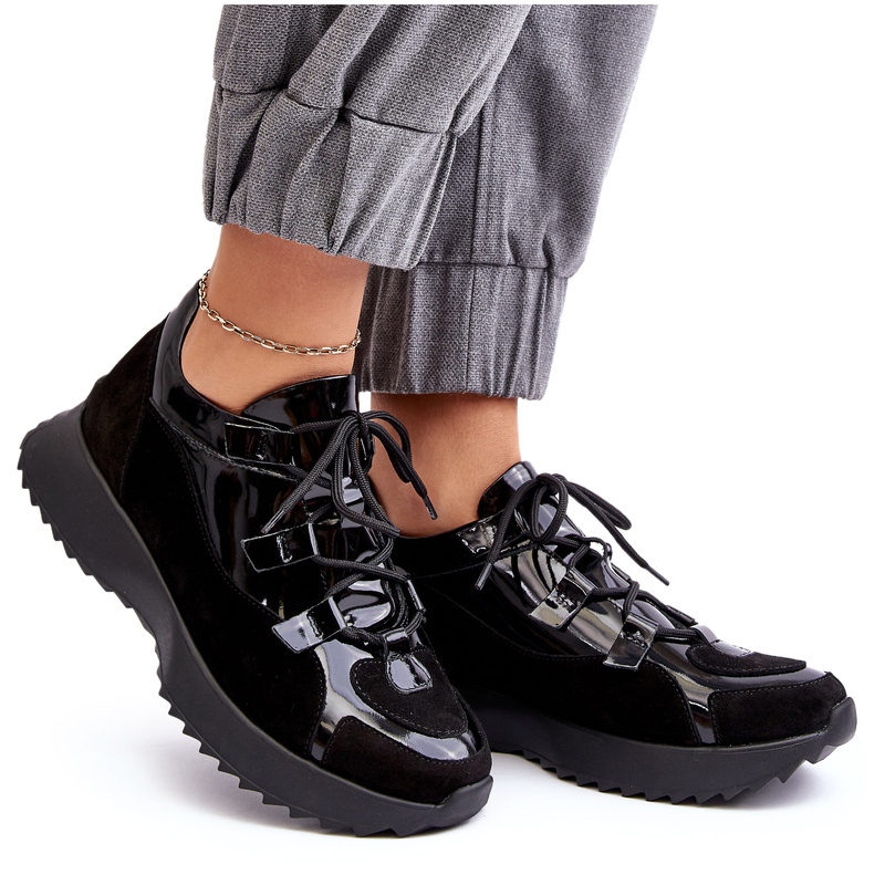 Rencontrez les chaussures de sport féminine vernie en cuir M01 / 2 de la marque Zazoo dans une couleur noire élégante. C'est un excellent choix pour les femmes qui apprécient le réconfort et l'apparence à la mode. Ces chaussures sont en cuir naturel de haute qualité, ce qui assure leur durabilité et leur confort pendant les usures quotidiennes.