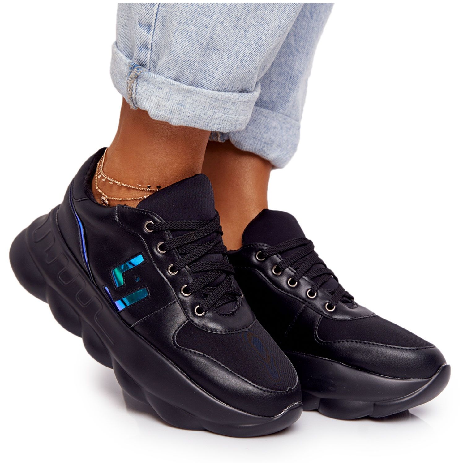 Détails: LU BOO Chaussures de sport pour femmes sur la plateforme noire