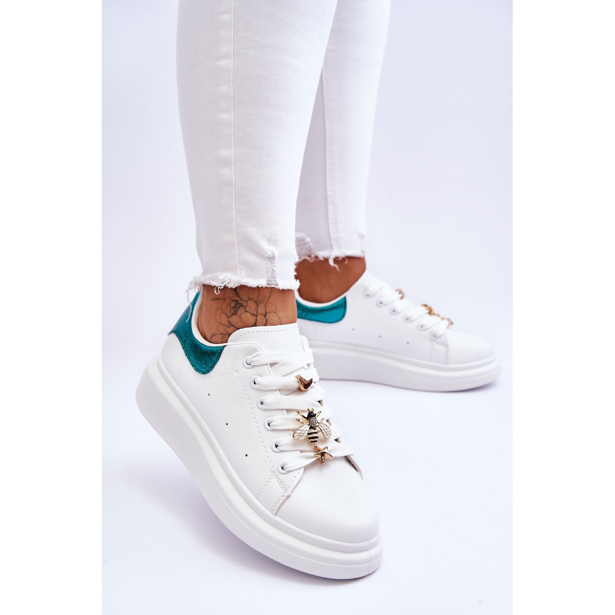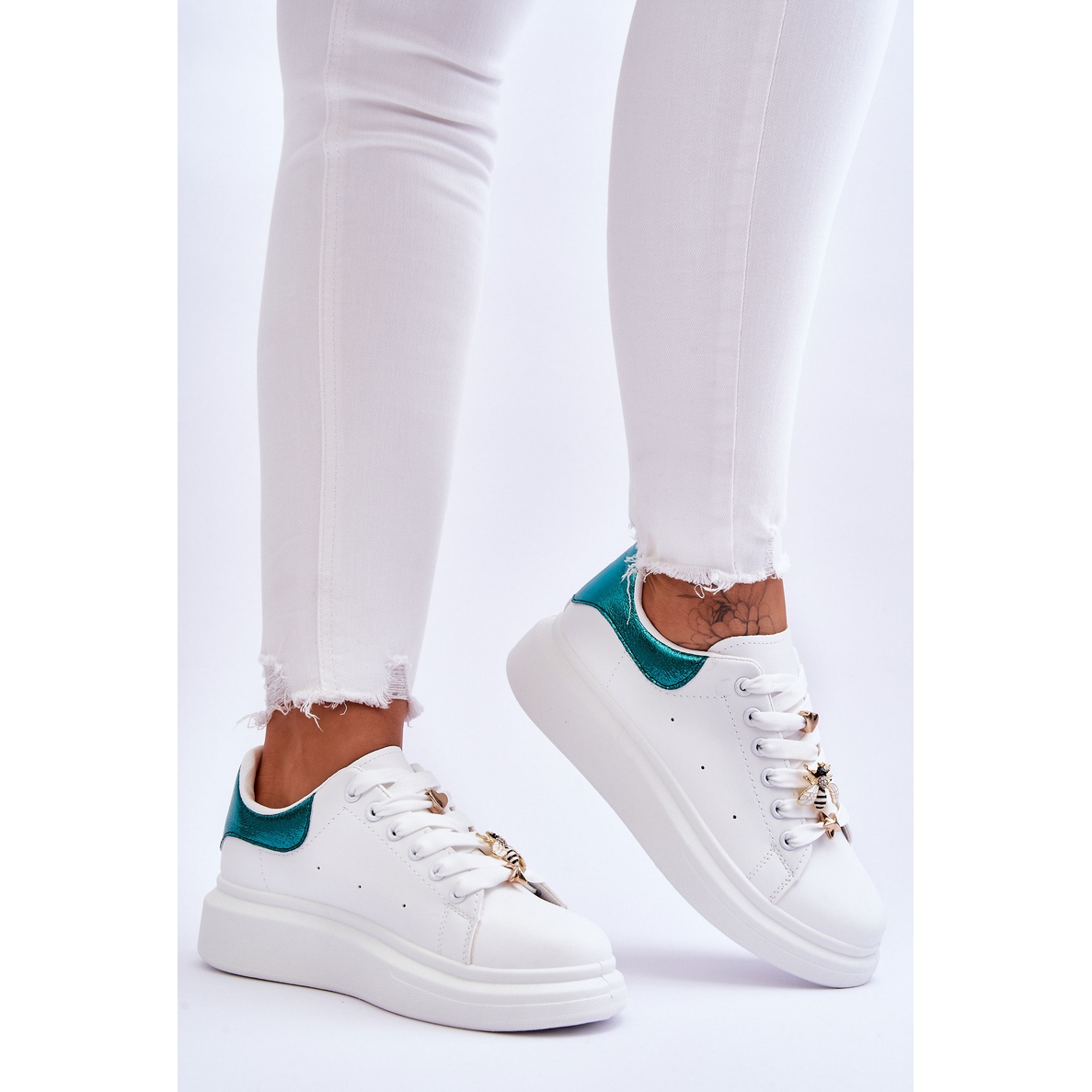 Détails: FG2 Chaussures De Sport Pour Femmes Sur Une Plateforme Massive Blanc Et Vert Chante blanche