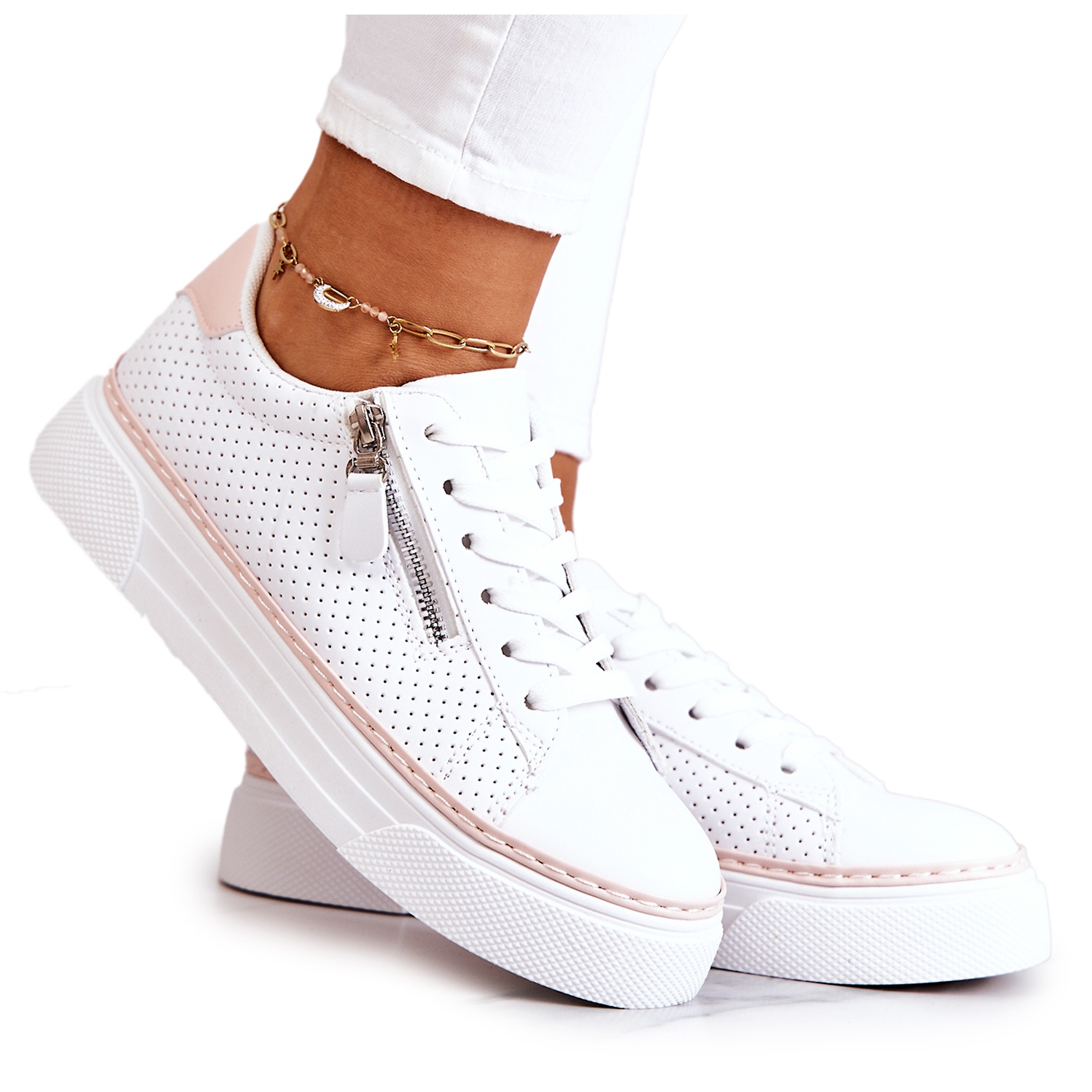 Découvrez le confort et le style avec les chaussures de sport à plateforme FB2 pour femme en blanc et rose. Fabriqués en cuir écologique de haute qualité, ils garantissent non seulement un look tendance, mais également durabilité et confort de port. Ces chaussures sont une combinaison parfaite de fonctionnalité et d'élégance, qui seront le complément parfait à de nombreux styles différents.
