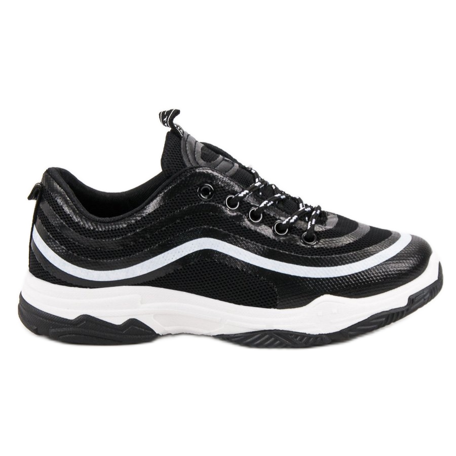 Des chaussures de sport noires à semelle épaisse ajouteront non seulement du style, mais affineront également optiquement votre silhouette. Grâce aux talons souples intégrés et à une plateforme confortable de 3,5 cm de haut, vous vous sentirez en confiance et à l'aise toute la journée, que vous alliez à l'entraînement, à une promenade ou à une réunion entre amis.