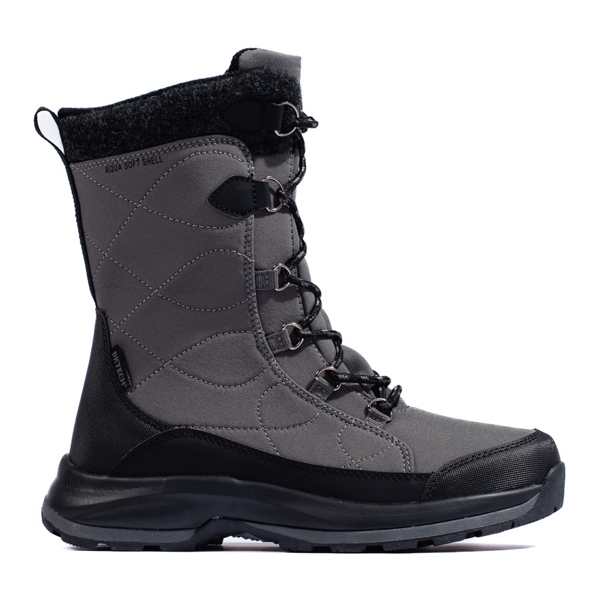 Ce sont des chaussures pratiques combinant la protection contre l'humidité, la chaleur et une bonne adhérence avec la commodité de remercier le laçage et le château. Des couleurs grises et modérées et un look universel et sportif les rendent faciles à correspondre à différents styles.