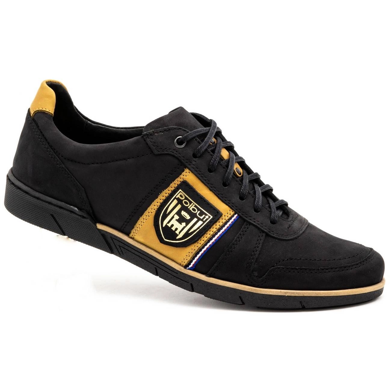 Détails: Polbut Chaussures décontractées en cuir pour hommes 2113 noir avec gingembre le noir jaune