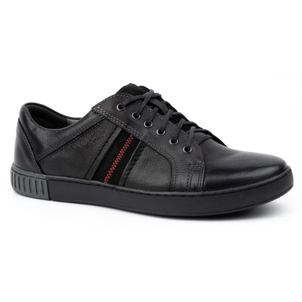 Nous présentons des chaussures en cuir masculin décontractées 29KAM du renom fabricant Kampol, qui sont un excellent choix pour les hommes qui apprécient le confort et l'élégance dans la vie quotidienne. Ces chaussures noires combinent le design moderne avec des éléments classiques, ce qui signifie qu'ils correspondent parfaitement à chaque occasion - à la fois pour le travail et les réunions avec des amis.