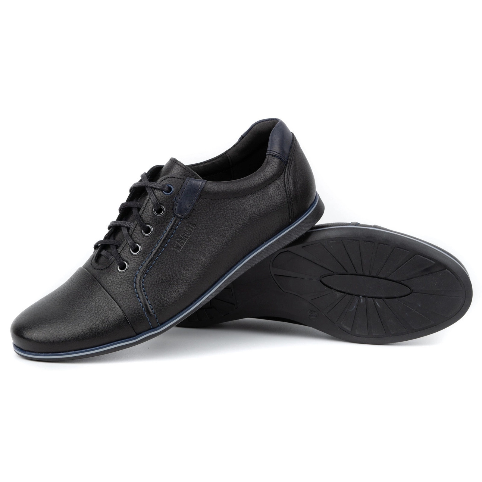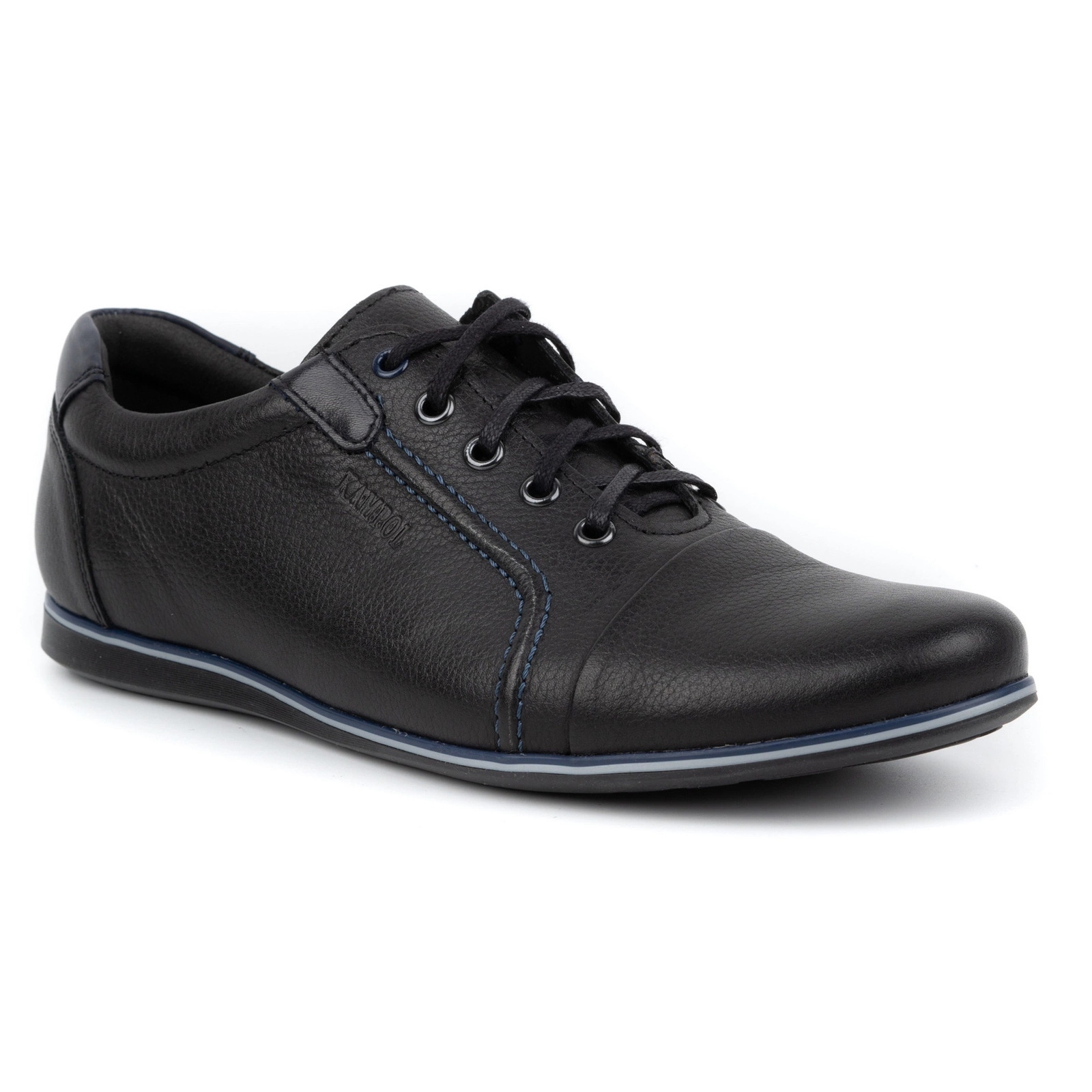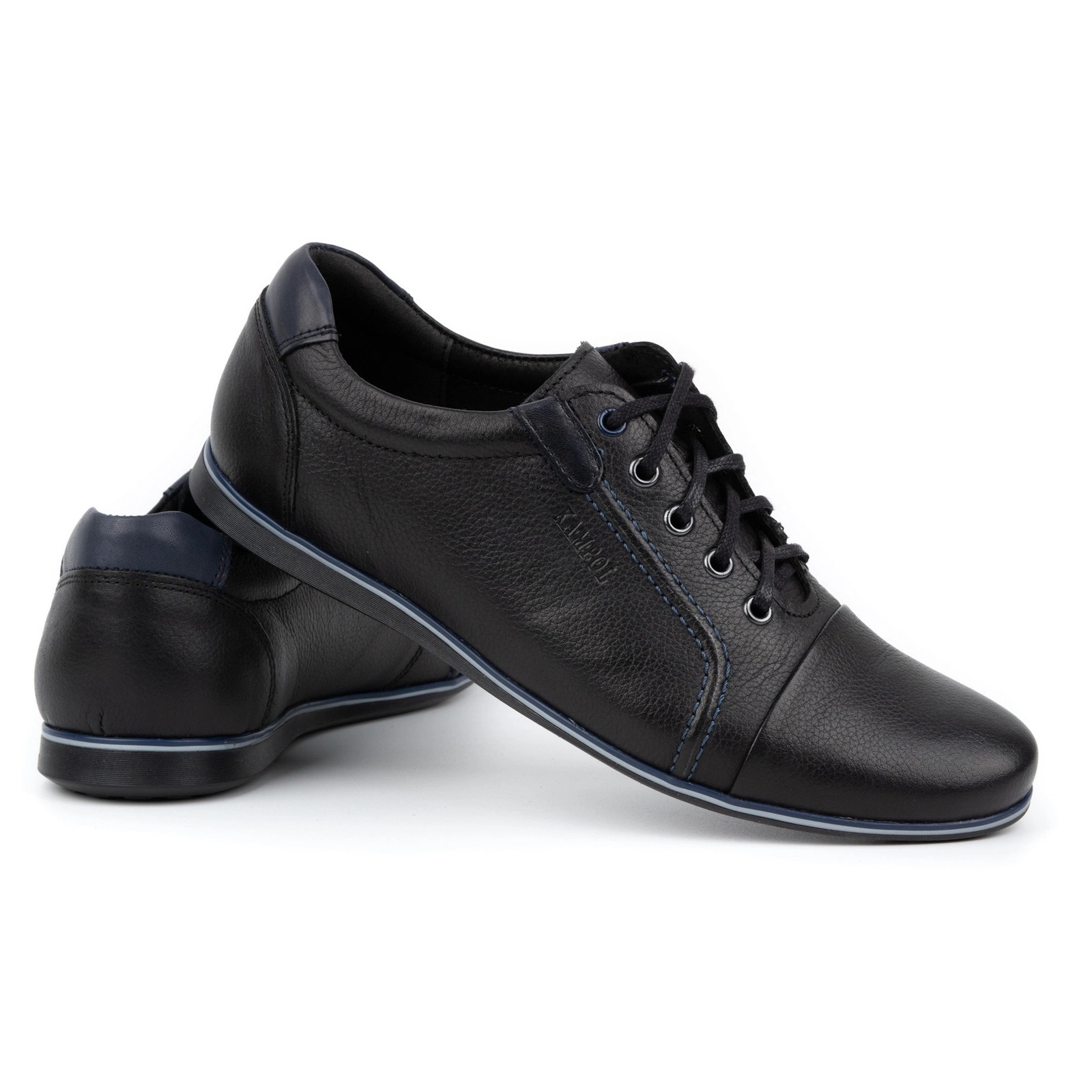 Kampol 39 / 5KAM est solide, chaussures en cuir dans une couleur noire universelle - élégante, confortable et durable. Un excellent choix pour les hommes qui apprécient les classiques et le confort à un usage quotidien.
