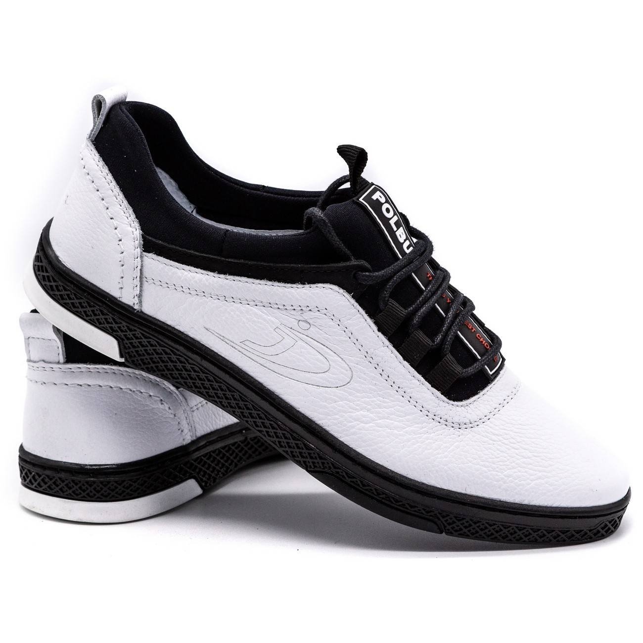 Les chaussures élégantes, confortables et universelles - Polbut K24 sont une proposition pour les hommes à la recherche de chaussures de tous les jours avec un personnage classique avec un accent moderne. La tige blanche du cuir naturel contraste avec la semelle noire, qui donne aux chaussures un look frais original.