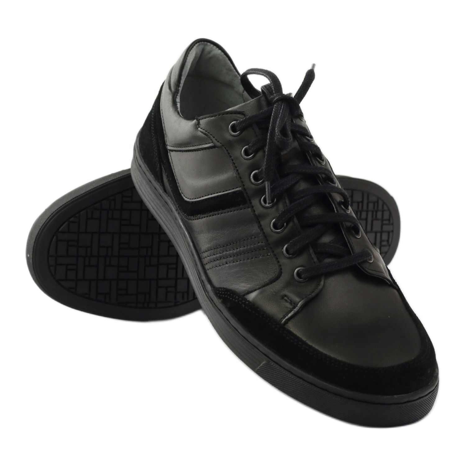 Chaussures de sport élégantes, confortables et durables de la marque polonaise Riko, modèle 828. Fabriquées entièrement en cuir naturel - tant la tige que la semelle intérieure - ce qui garantit le confort de port et la longue durée de vie de la chaussure. Le design classique et intemporel en noir conviendra aussi bien au quotidien que lors d'occasions plus décontractées.
