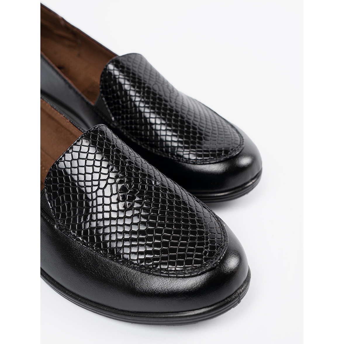 Nous présentons des chaussures pour femmes avec une texture de serpent dans une couleur noire élégante, qui est une combinaison parfaite de style et de confort. Ces chaussures à la mode sont un complément parfait à chaque garde-robe, en ajoutant du style et de la classe à des stylisations quotidiennes et plus formelles.
