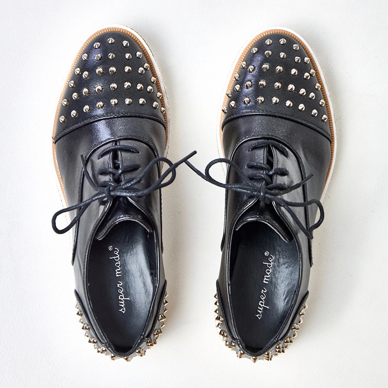 Détails: Chaussures des femmes noires avec des goujons de grès le noir