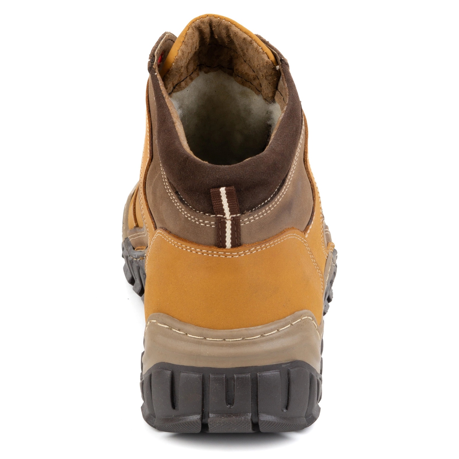 Les chaussures d'hiver pour hommes Olivier sont un modèle conçu pour les hommes qui apprécient la qualité et les détails. Ces chaussures se caractérisent par un design intéressant et original de couleur jaune et de haute qualité, souligné par l'utilisation de cuir naturel comme matériau.