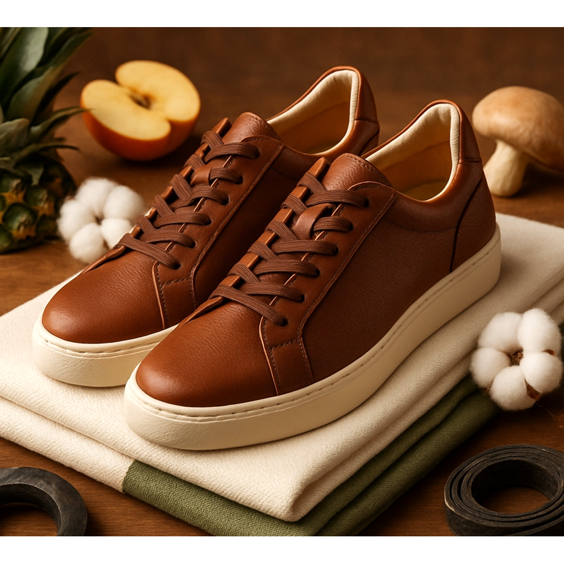- Cuir végétalien : Alternatives végétales (Piñatex d'ananas, Cuir de champignon de champignons, Cuir de pomme de pommes)