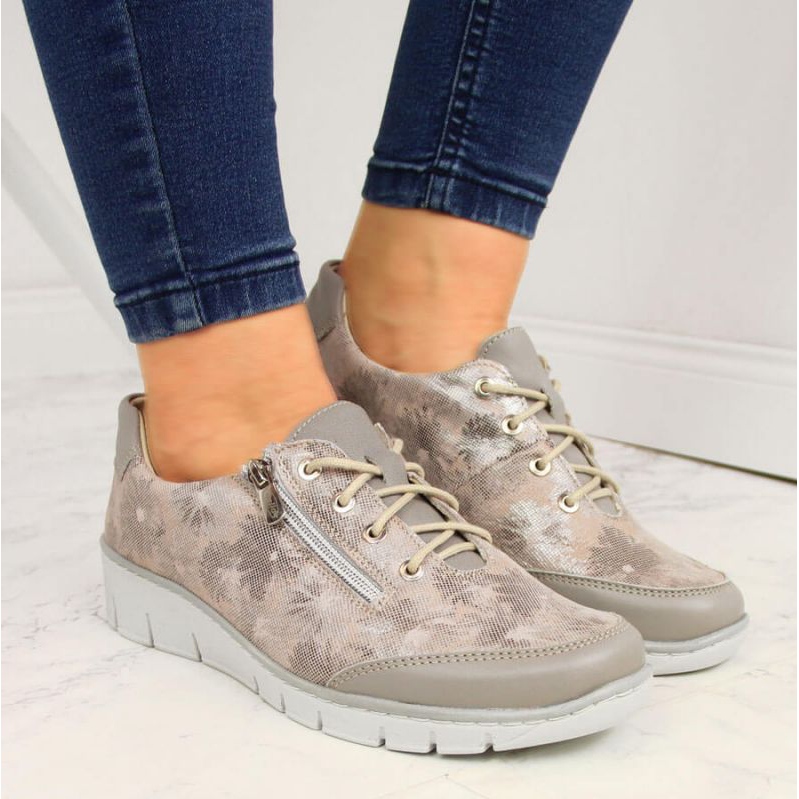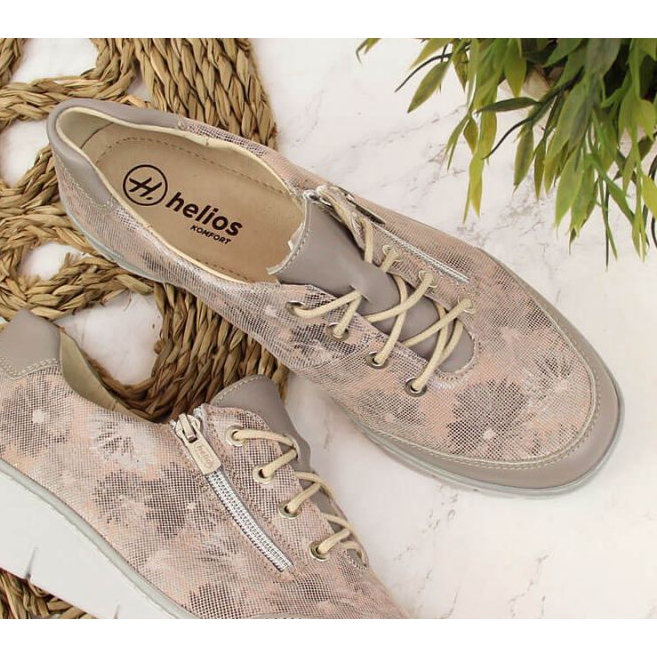 Découvrez un style et un confort uniques avec les chaussures en cuir fleuri beige Helios W 334. Ce modèle, fabriqué en Pologne, allie élégance et praticité, ce qui en fait un choix idéal pour les femmes modernes.