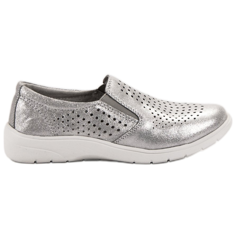 Les chaussures en cuir argenté de Kylie sont le choix parfait pour les femmes qui souhaitent se démarquer tout en profitant du confort de port. Fabriquées en cuir naturel perforé de haute qualité, ces chaussures sont parfaites pour les journées plus chaudes du printemps et de l'été. Le motif ajouré leur donne non seulement un look élégant, mais permet également à vos pieds de respirer, ce qui est extrêmement important lors des journées chaudes.