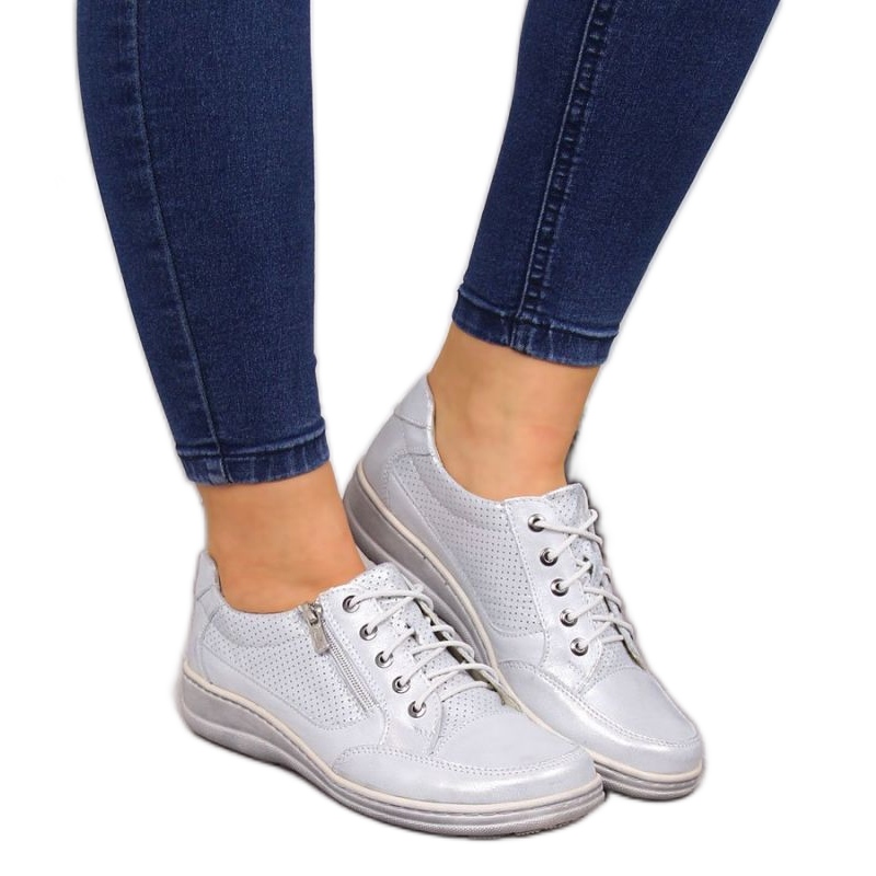 Détails: Chaussures en cuir avec fermeture éclair, argent Helios W H357C