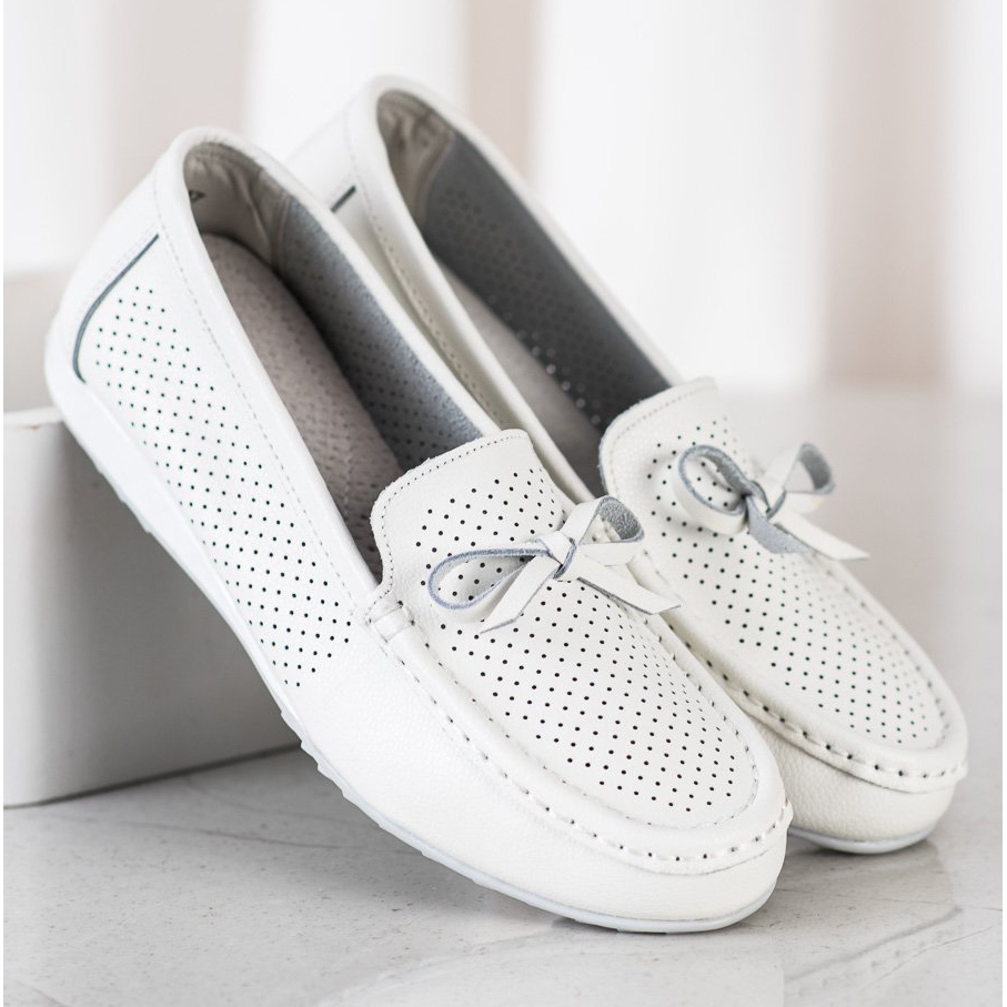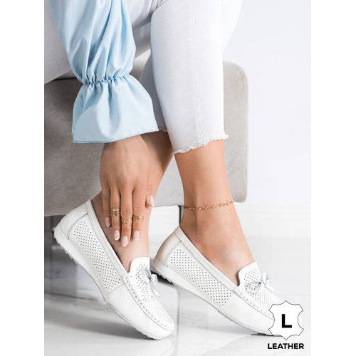 Nous vous présentons des chaussures en cuir élégantes et stylées avec un nœud du célèbre fabricant Goodin. Ces mocassins blancs sont le choix parfait pour les femmes qui apprécient la combinaison du confort et de l'apparence à la mode. Grâce au talon souple intégré et à l'absence de talon, ces chaussures sont extrêmement confortables et adaptées à un usage quotidien ainsi qu'à des occasions plus formelles.