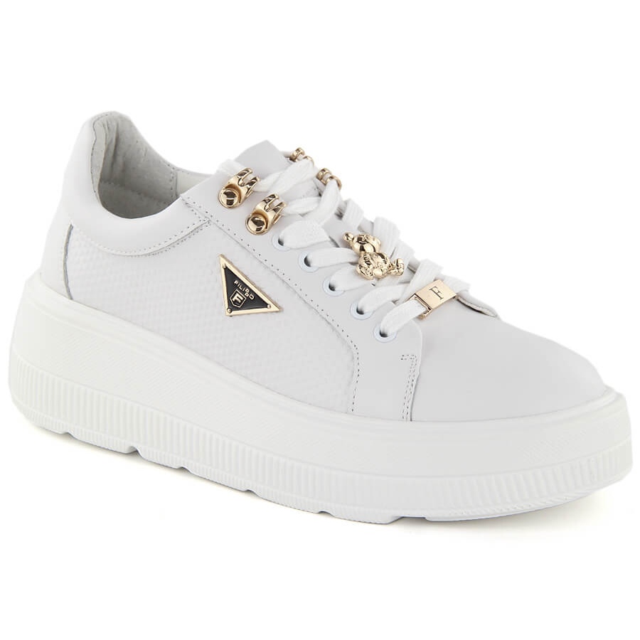 Les chaussures en cuir pour femmes sur la plate-forme White Filippo DP6382 sont un excellent choix pour les femmes qui apprécient une combinaison de style et de confort. Fabriqués en cuir naturel de haute qualité, ces chaussures ravissent non seulement avec une apparence élégante, mais aussi avec le confort de porter, grâce à l'insert extrêmement doux de cuir naturel.