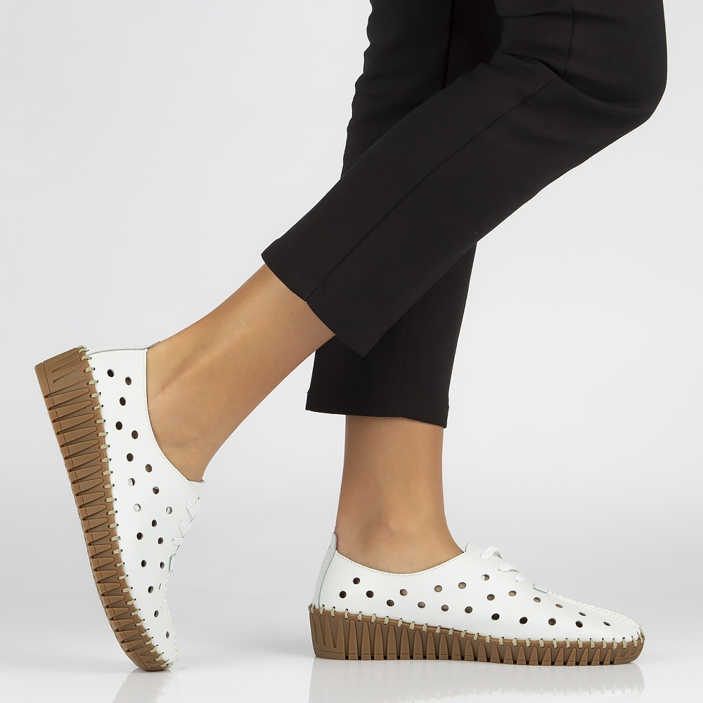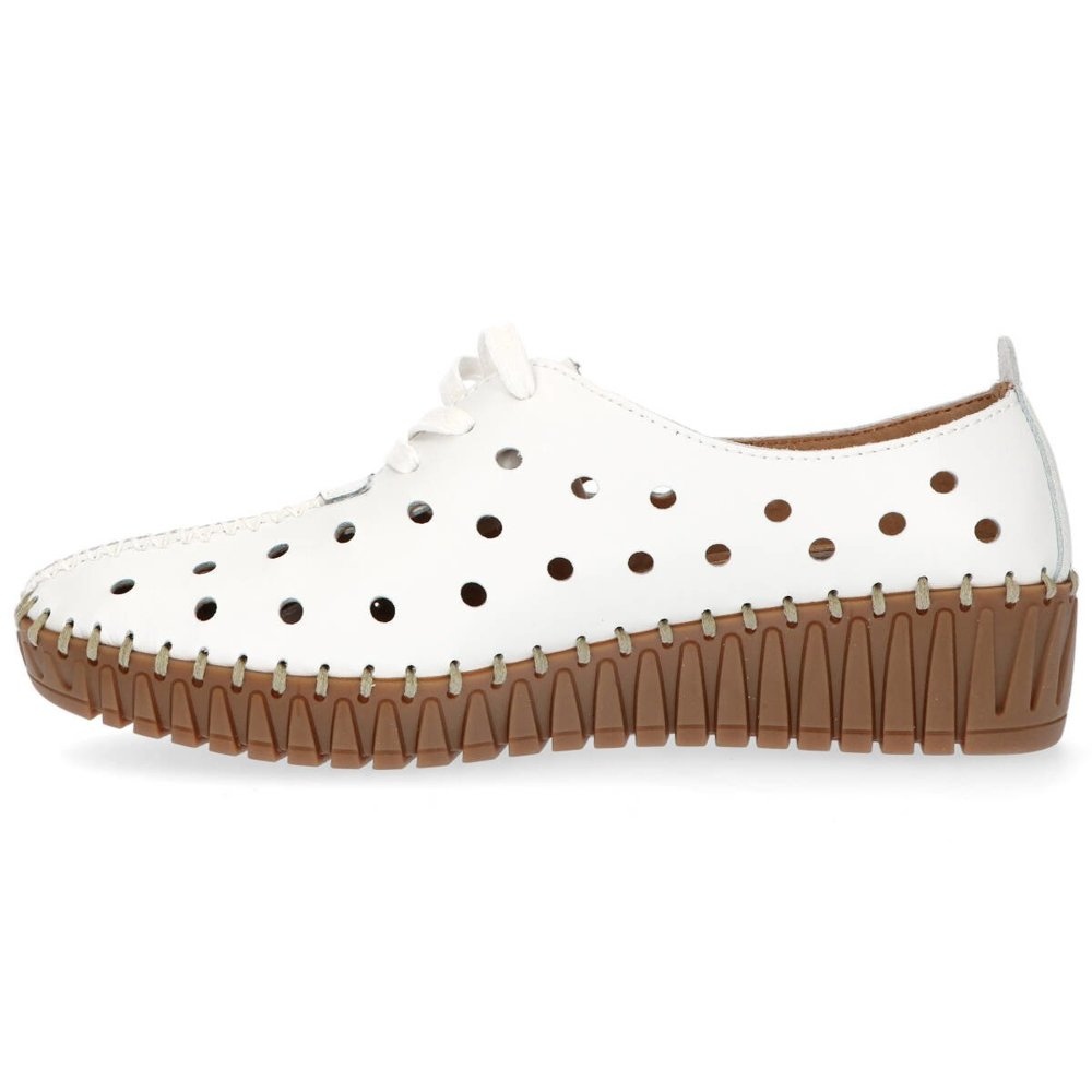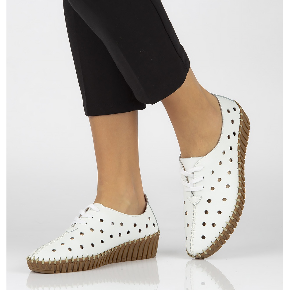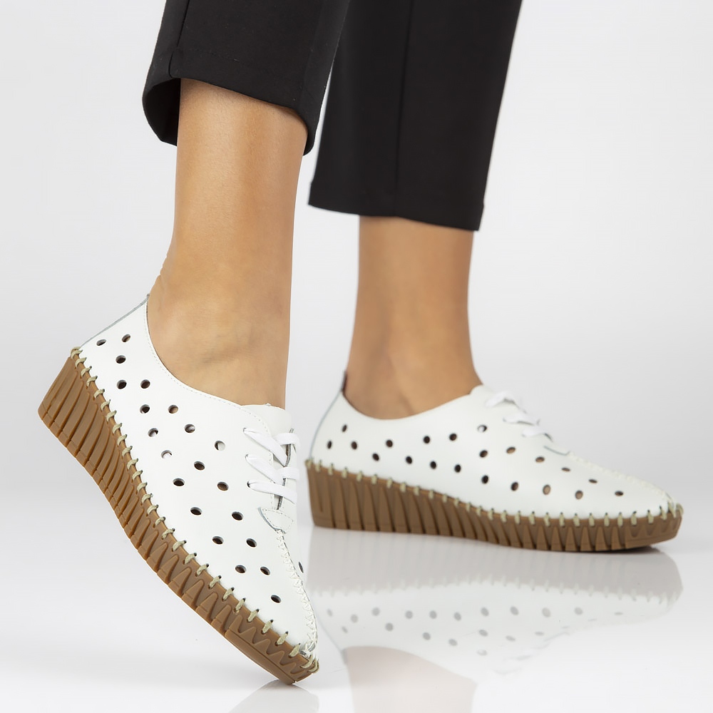 Le modèle DP1230/20 WH se distingue par une finition ajourée et un nez rond, qui lui ajoute légèreté et subtilité. La semelle en plastique garantit durabilité et stabilité, et la hauteur de la plateforme de 2 cm et la cale de 4 cm offrent un amorti adéquat pendant la marche. La hauteur supérieure est de 5 cm, ce qui crée un look classique et élégant.