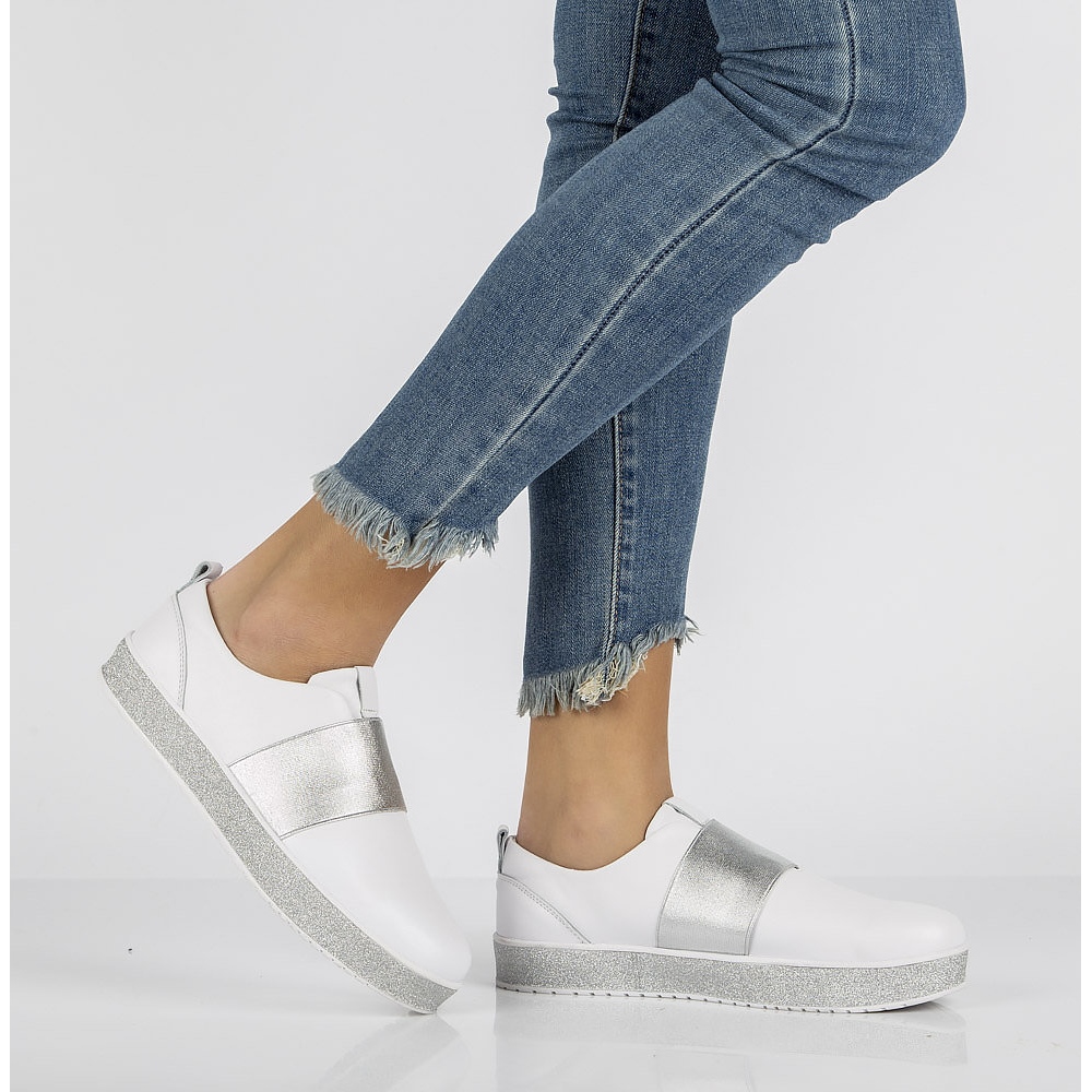 Ces chaussures blanches sont universelles et s'adaptent parfaitement à différents styles, à la fois décontractés et légèrement plus élégants. En raison du manque de motifs, ils peuvent être facilement combinés avec d’autres vêtements. La largeur G assure un bon ajustement au pied et la semelle en plastique flexible offre l'amorti nécessaire.
