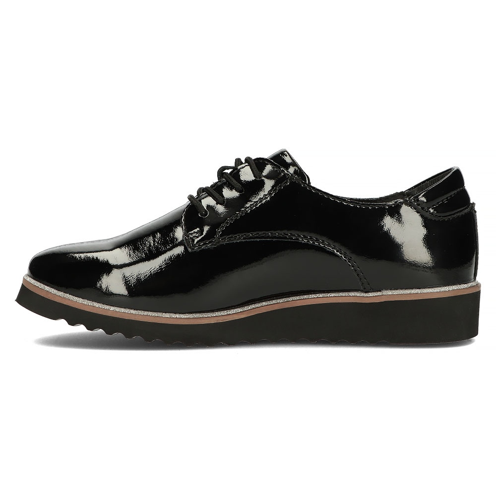 Les chaussures se caractérisent par un bout rond et une fermeture à lacets, qui assurent un ajustement parfait au pied. L'intérieur est doublé de tissu et la semelle intérieure en cuir naturel garantit un confort de port à long terme. Les chaussures ont une tige de 6 cm et une cale de 3 cm, ce qui leur permet d'allonger optiquement les jambes tout en assurant la stabilité.