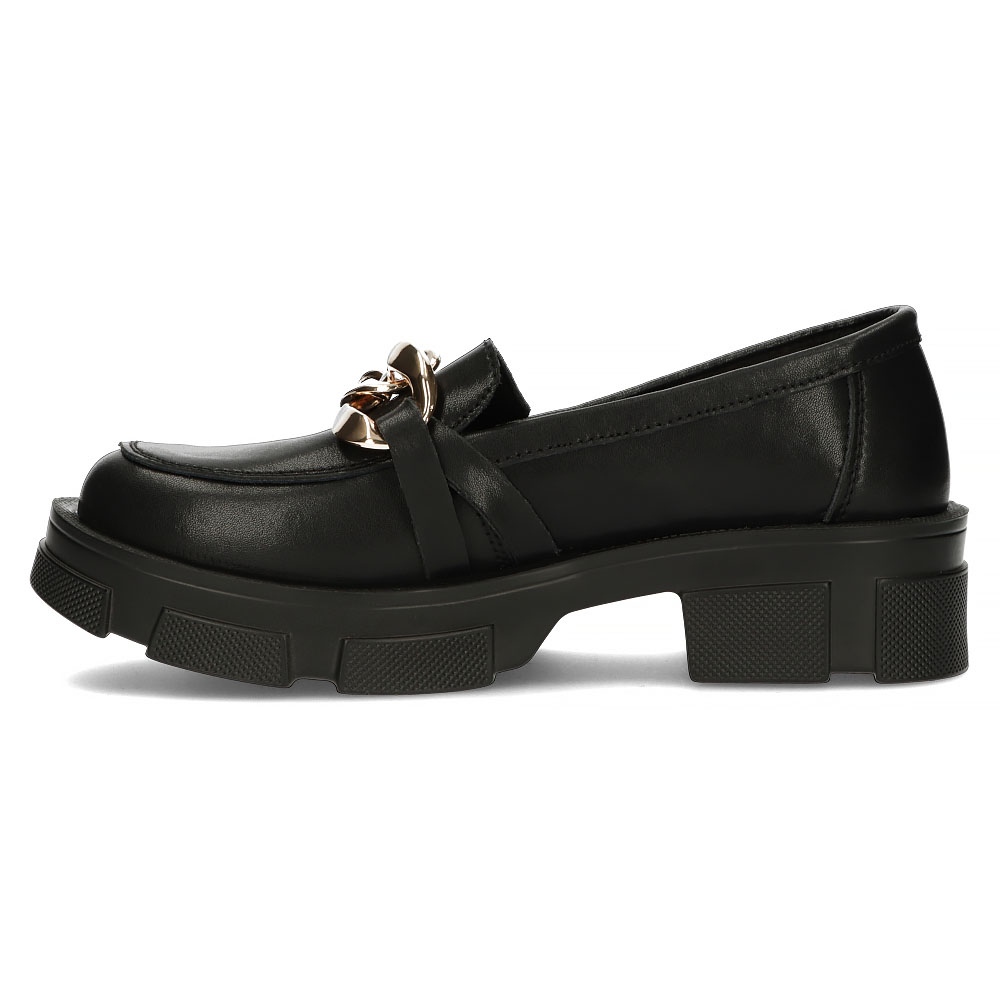 Ces chaussures se caractérisent par un bout rond, ce qui les rend agréables à porter, et leur conception à enfiler les rend faciles à enfiler. Un avantage supplémentaire est une chaîne élégante qui donne aux chaussures un caractère unique. Le matériau de la semelle en plastique garantit durabilité et résistance à un usage quotidien.