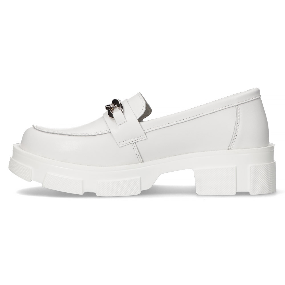 Ces chaussures se caractérisent par une fermeture à enfiler, ce qui les rend plus faciles à enfiler et à enlever. Un avantage supplémentaire est la chaîne subtile, qui leur donne une touche tendance, s'adaptant parfaitement à différents styles. Grâce à la semelle synthétique et à la hauteur de plateforme de 2,5 cm, chaque pas sera sûr et stable.