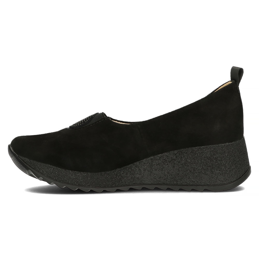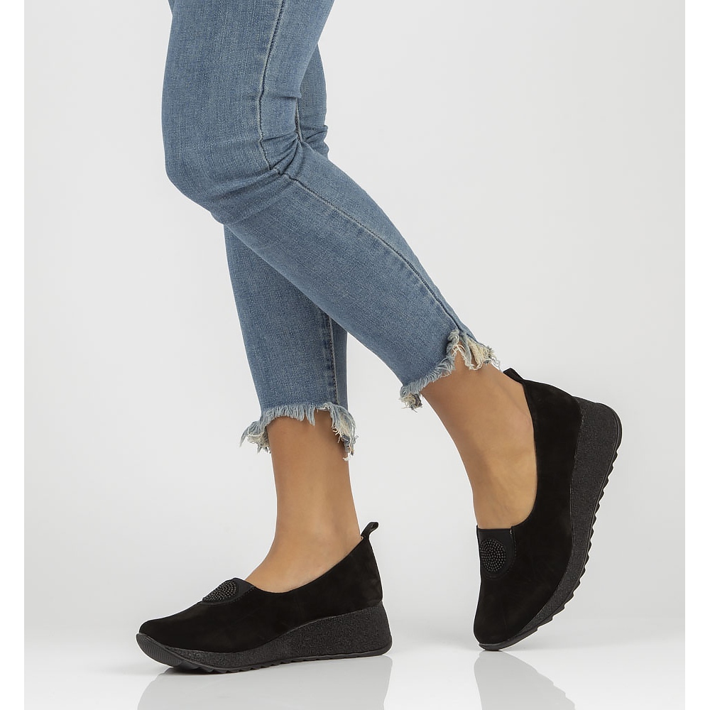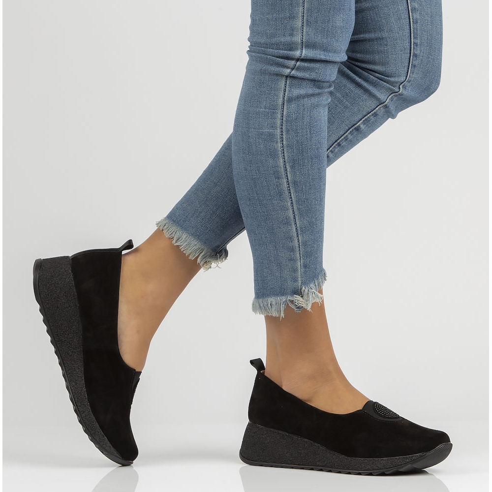 Ce modèle se caractérise par une fermeture à enfiler pratique, qui permet de l'enfiler et de l'enlever facilement. La doublure intérieure en tissu et l'insert en cuir garantissent un confort de port même pendant une longue journée. La semelle en plastique mesure 1,5 cm de haut et est particulièrement résistante, ce qui vous permet de profiter de ces chaussures pendant de nombreuses saisons.