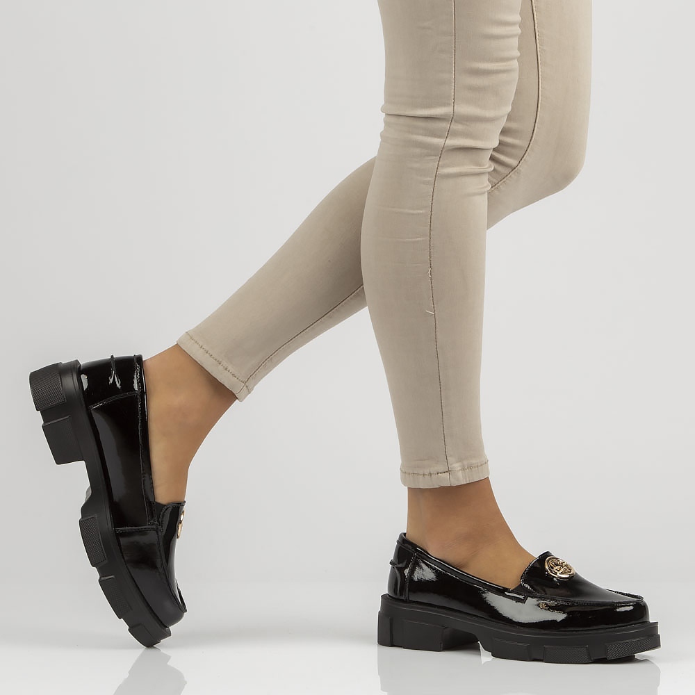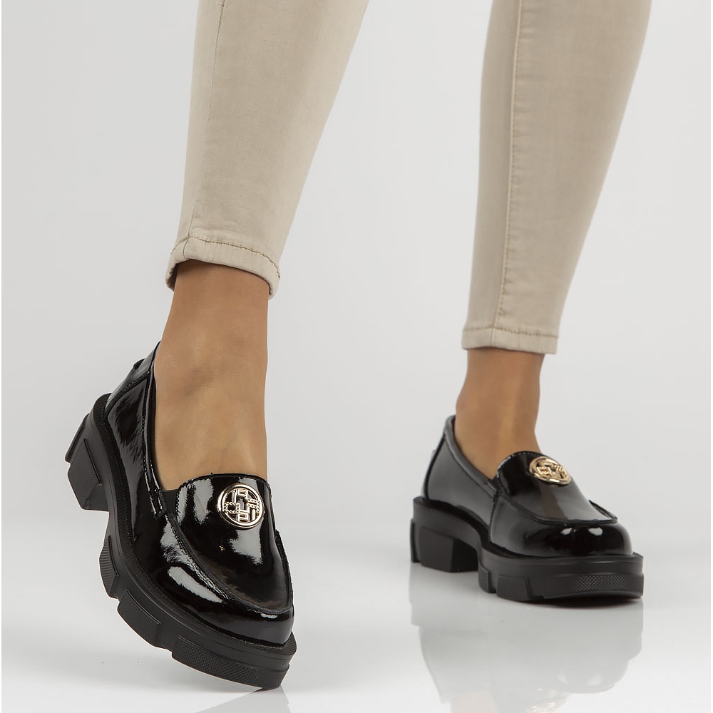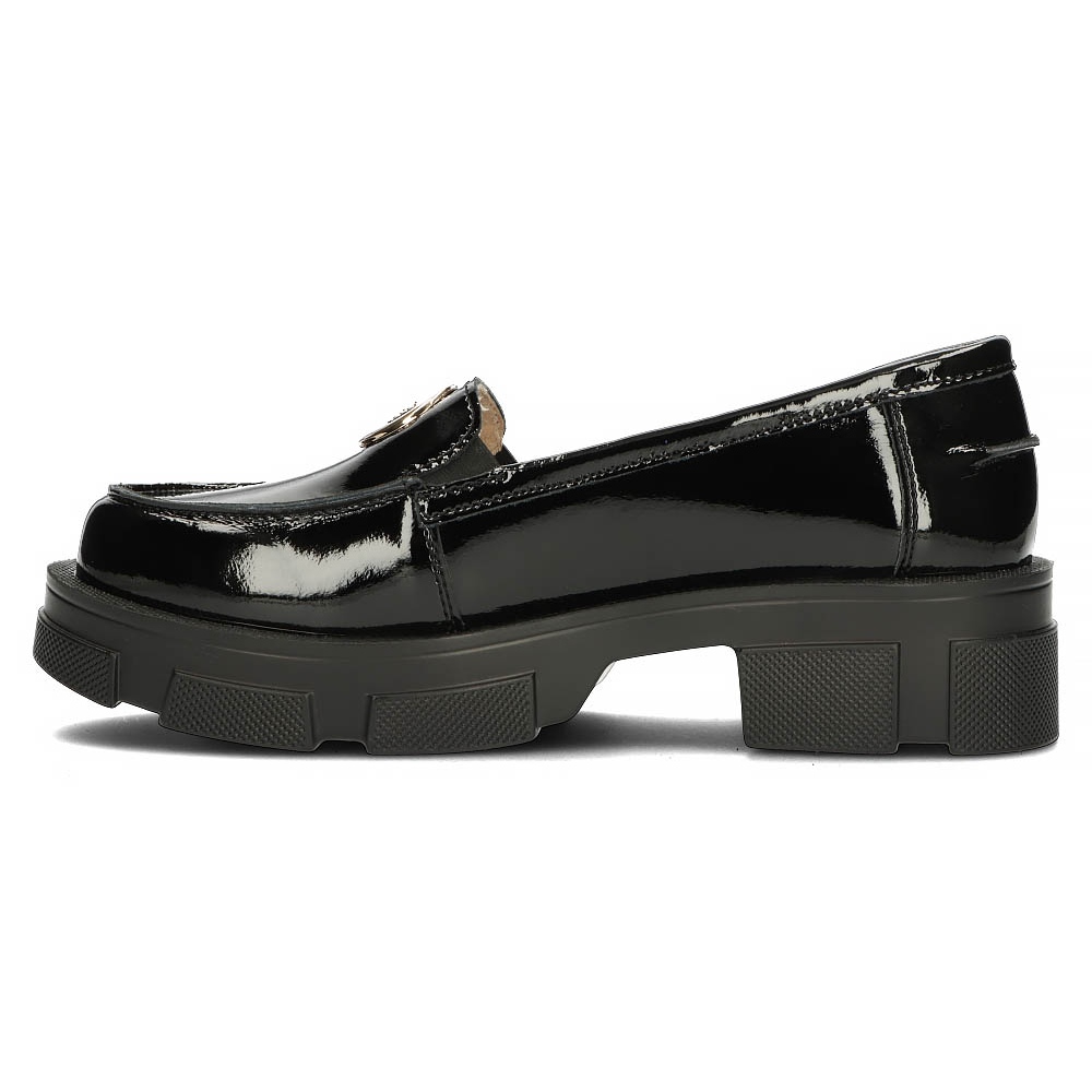 Ce modèle se distingue par une fermeture à enfiler, qui facilite l'enfilage et le retrait, et la doublure en tissu assure une bonne circulation de l'air. Un avantage supplémentaire des chaussures Filippo sont les strass qui leur confèrent un caractère unique et la finition laquée qui met l'accent sur l'élégance.