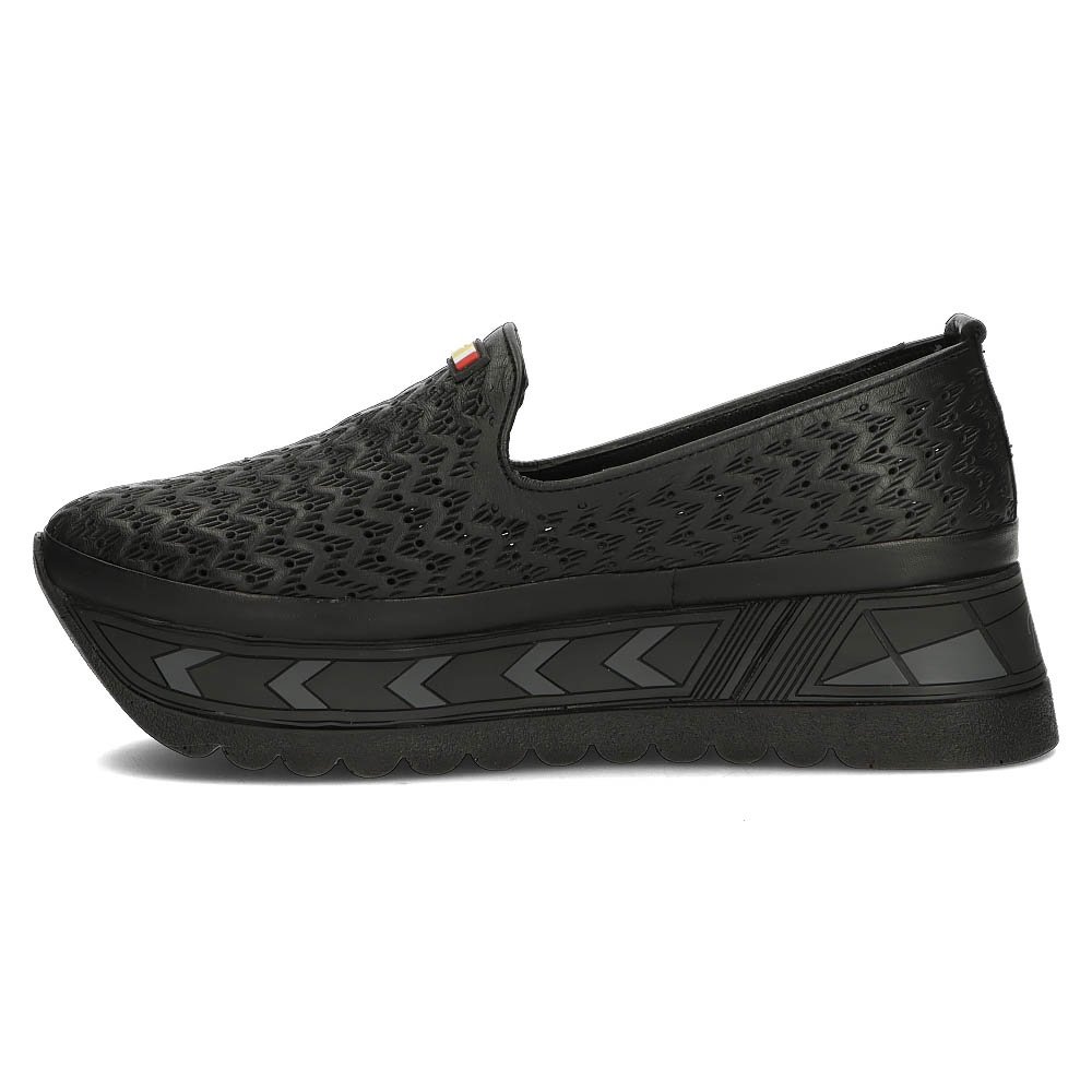 Ce modèle se caractérise par une fermeture slip-on innovante, qui facilite son enfilage et son retrait. L'intérieur des chaussures est doublé de cuir naturel, ce qui assure une bonne ventilation et est agréable à porter toute la journée. La semelle en plastique est légère et résistante, et la hauteur de la plateforme de 4 cm et la hauteur du talon jusqu'à 5 cm garantissent un confort de marche.