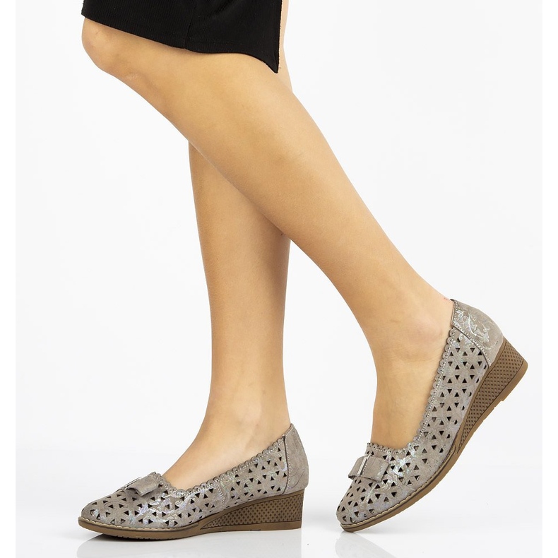 Le modèle DP752/20 se distingue par une conception slip-on qui facilite l'enfilage et le retrait des chaussures. Grâce à leur bout rond et à leur talon compensé de 4,5 cm de haut, ces chaussures s'agencent bien avec différents ensembles, aussi bien avec des pantalons qu'avec des robes. De plus, la semelle marron contraste parfaitement avec la couleur grise, donnant à l'ensemble un look classique.