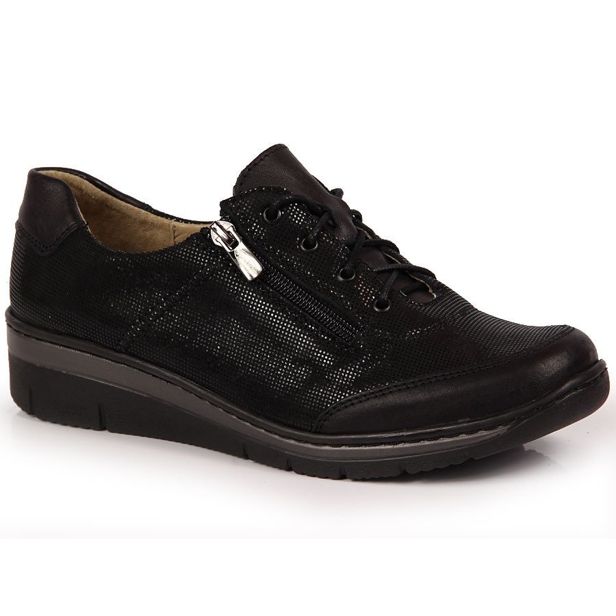 Les chaussures en cuir noir brillant Helios 334 sont le choix parfait pour les femmes qui apprécient l'élégance et le confort. Fabriquées en Pologne, ces chaussures de haute qualité allient design moderne et style classique, ce qui les rend parfaites aussi bien pour un usage quotidien que pour des situations plus formelles.