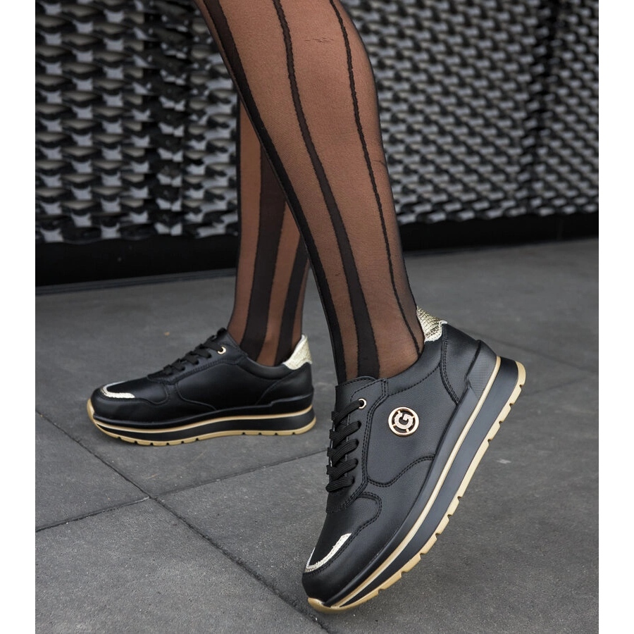 Des chaussures d'élégants femmes noires en tout en cuir naturel, décorées de zircons subtils. Le modèle GD-XF-64A de la catégorie des chaussures de sport pour femmes combine le design et la fonctionnalité modernes - idéal pour les jours d'été lorsque vous vous souciez du confort et de l'apparence à la mode.